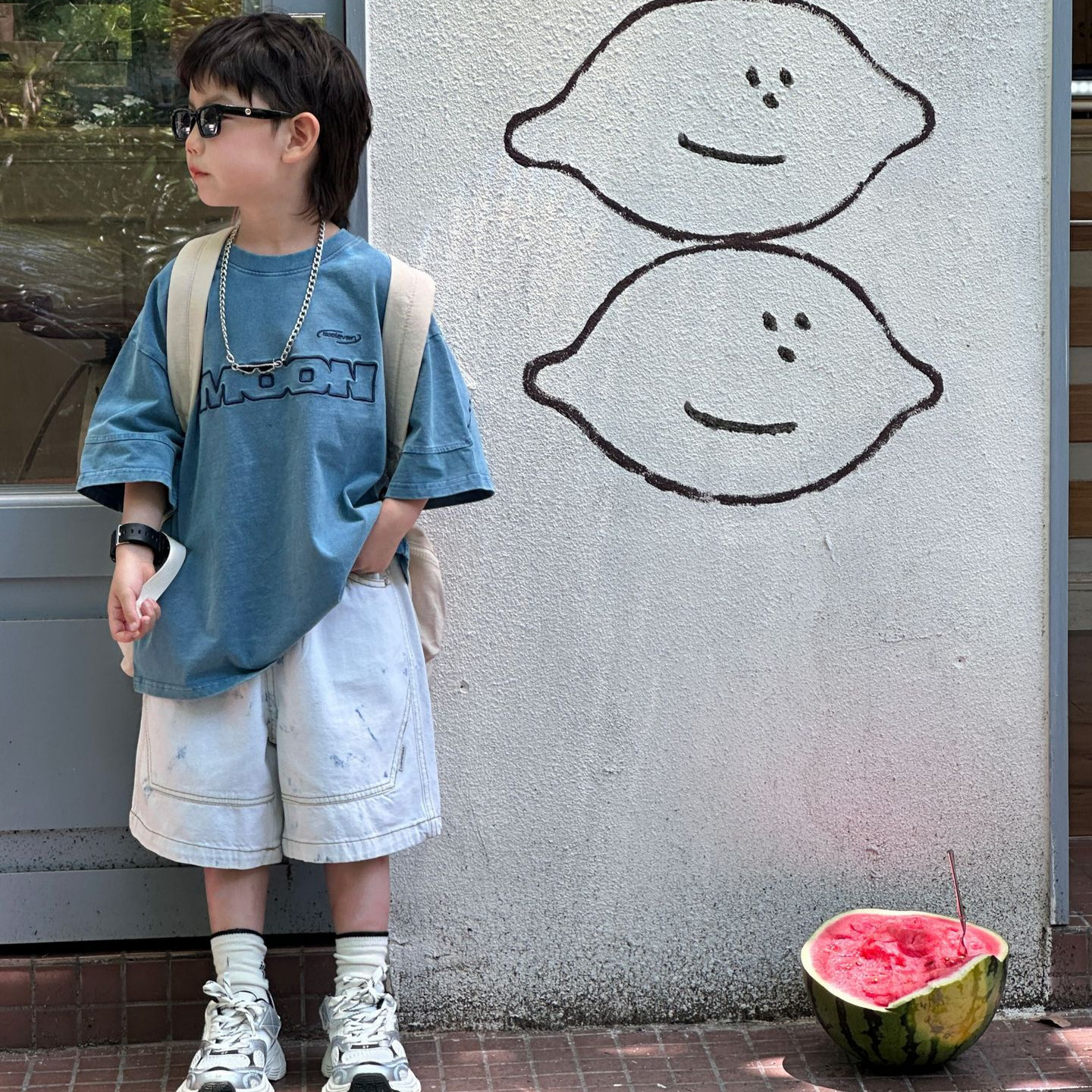 泰如夏季新款韩版男童时尚百搭设计感炒洗字母T恤儿童短袖潮