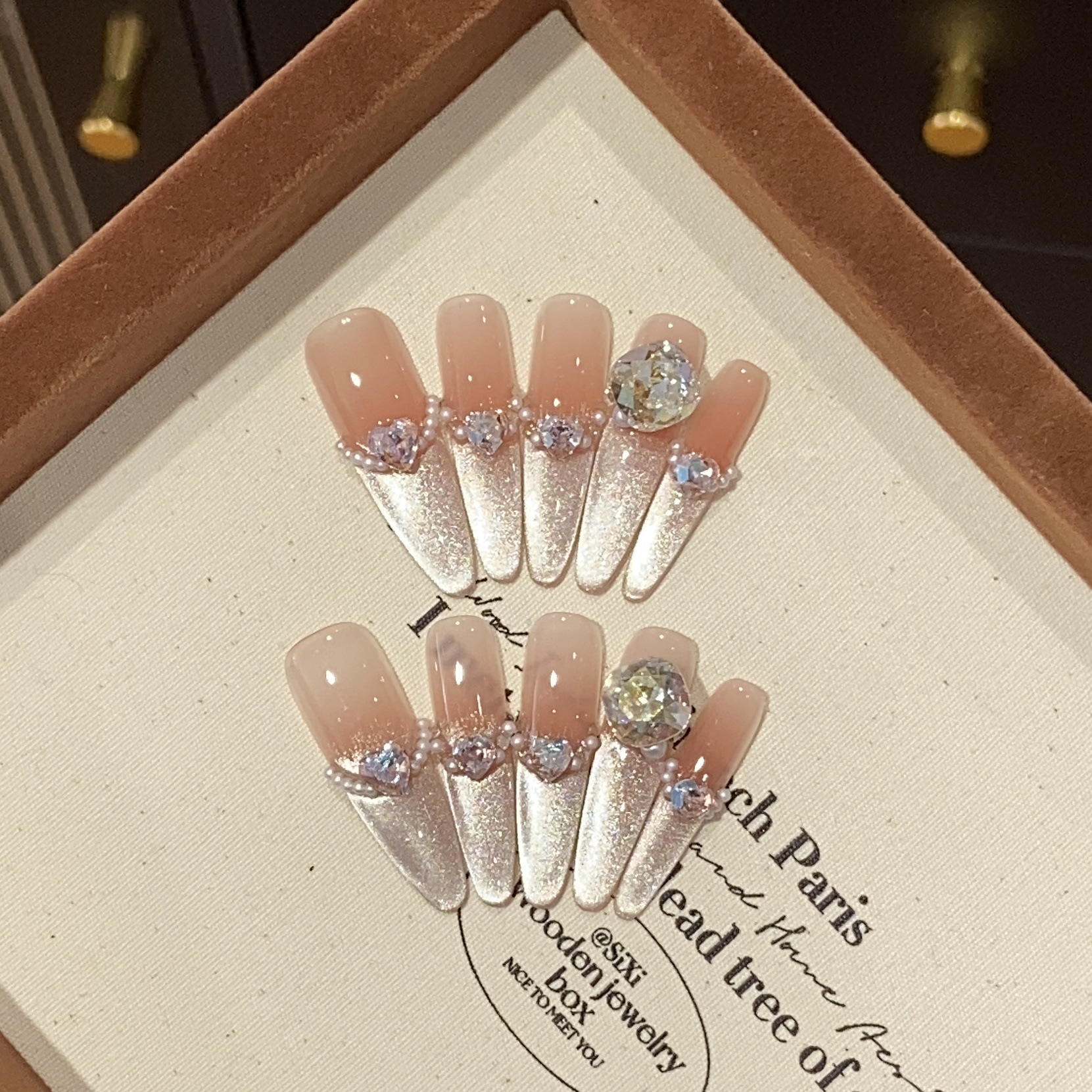 一只顾美甲 初恋感冰透爆闪法式珍珠碎钻广寒仙子可拆卸穿戴甲片