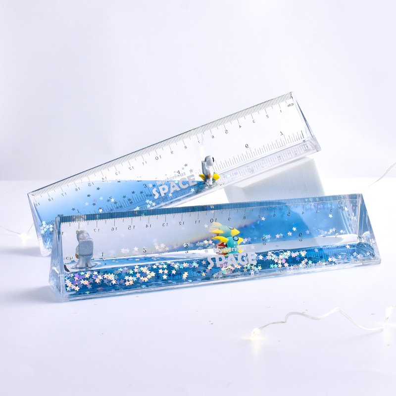 创意宇太空人航员液体流沙塑料亚克力笔筒直尺子文具学生办公用品