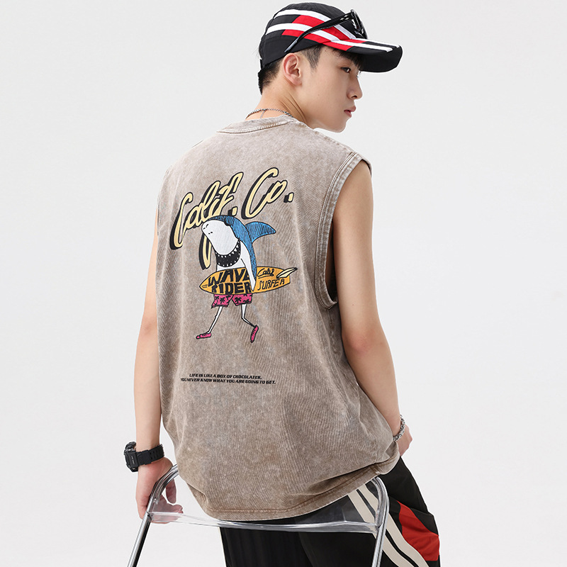 纯棉背心男夏季宽松美式复古水洗做旧无袖t恤潮牌ins外穿男士坎肩