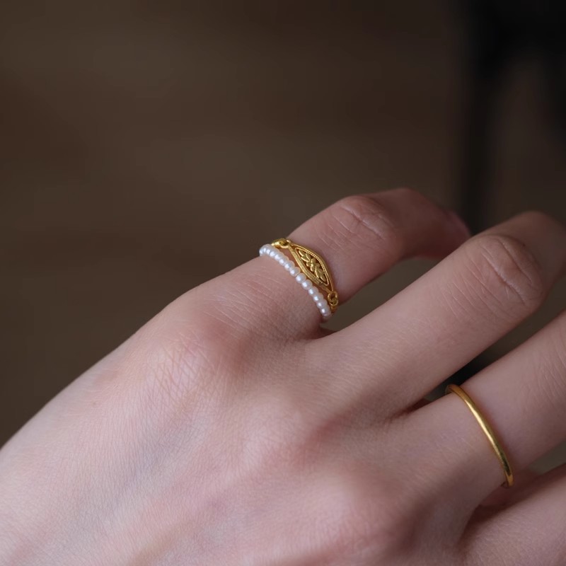 小红书爆款复古菱形镂空花型戒指古法奶奶戒复刻民国风尾戒可调节