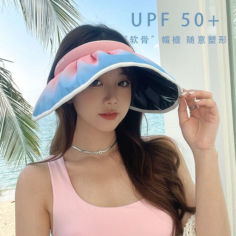 UPF50+防晒帽子女春夏防紫外线太阳帽黑胶大檐渐变色空顶贝壳帽
