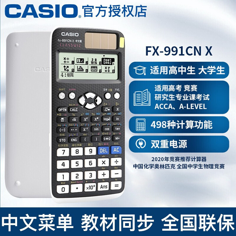 产品名称:Casio/卡西欧 FX-991CN ...品牌: Casio/卡西欧卡西欧型号: FX-991CN X颜色分类:类型: 多功能型 太阳能型 科学函数型适用场景: 辅助学习按关系送礼: 孩子屏幕材质: 适配电池类型: 双重电源