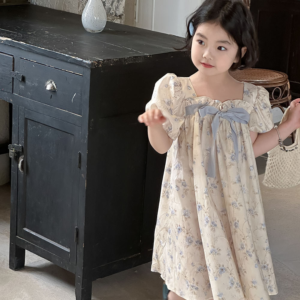 ins童装女童碎花系蝴蝶结公主裙136夏季新款泡泡袖棉布连衣裙