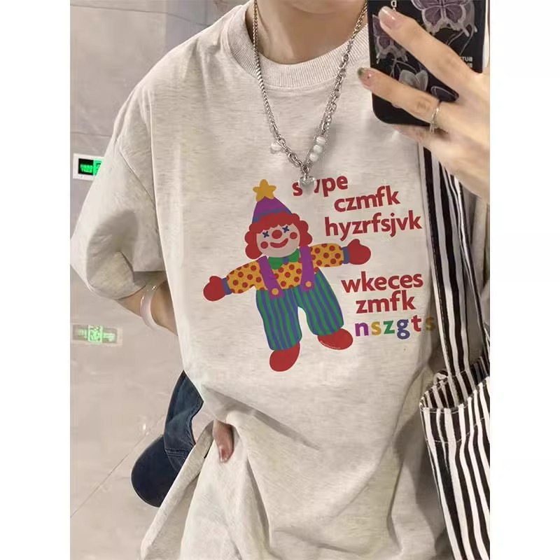 纯棉重磅印花短袖t恤女新款夏季宽松慵懒风港味chic半袖上衣