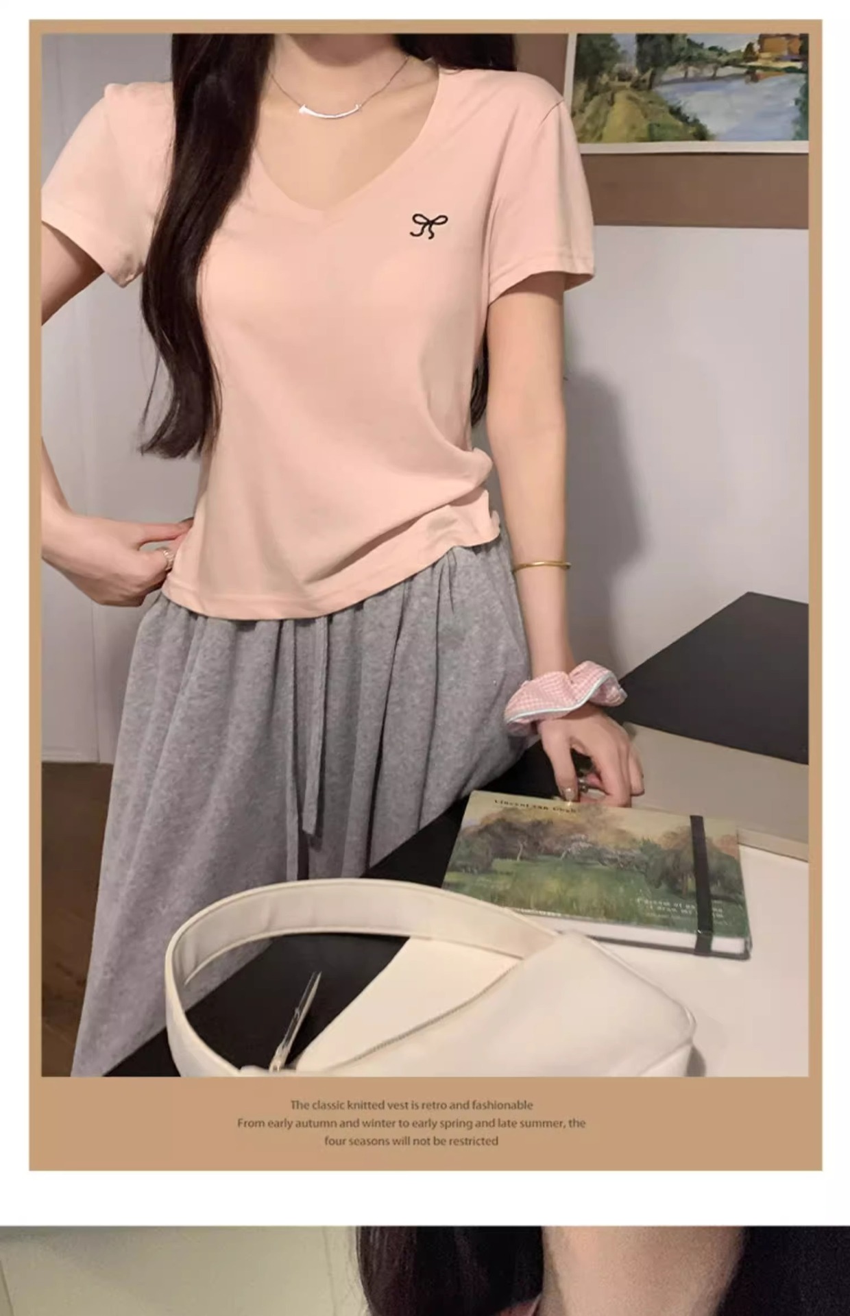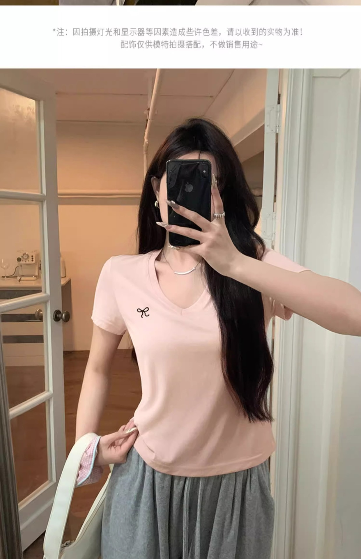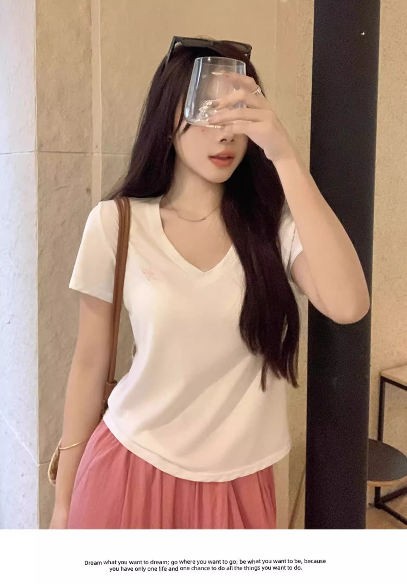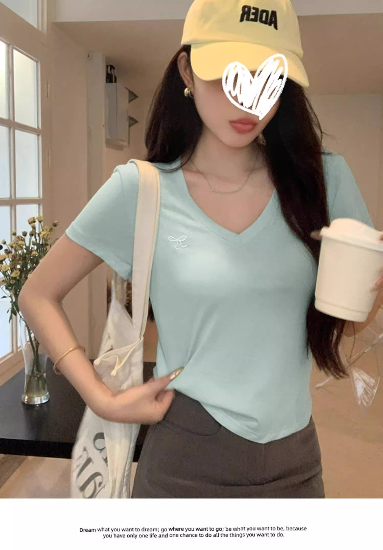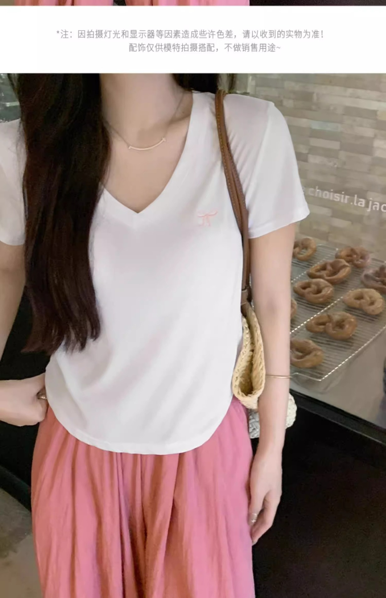 欧货v领短袖t恤女夏装新款正肩高级感休闲宽松体恤ins潮