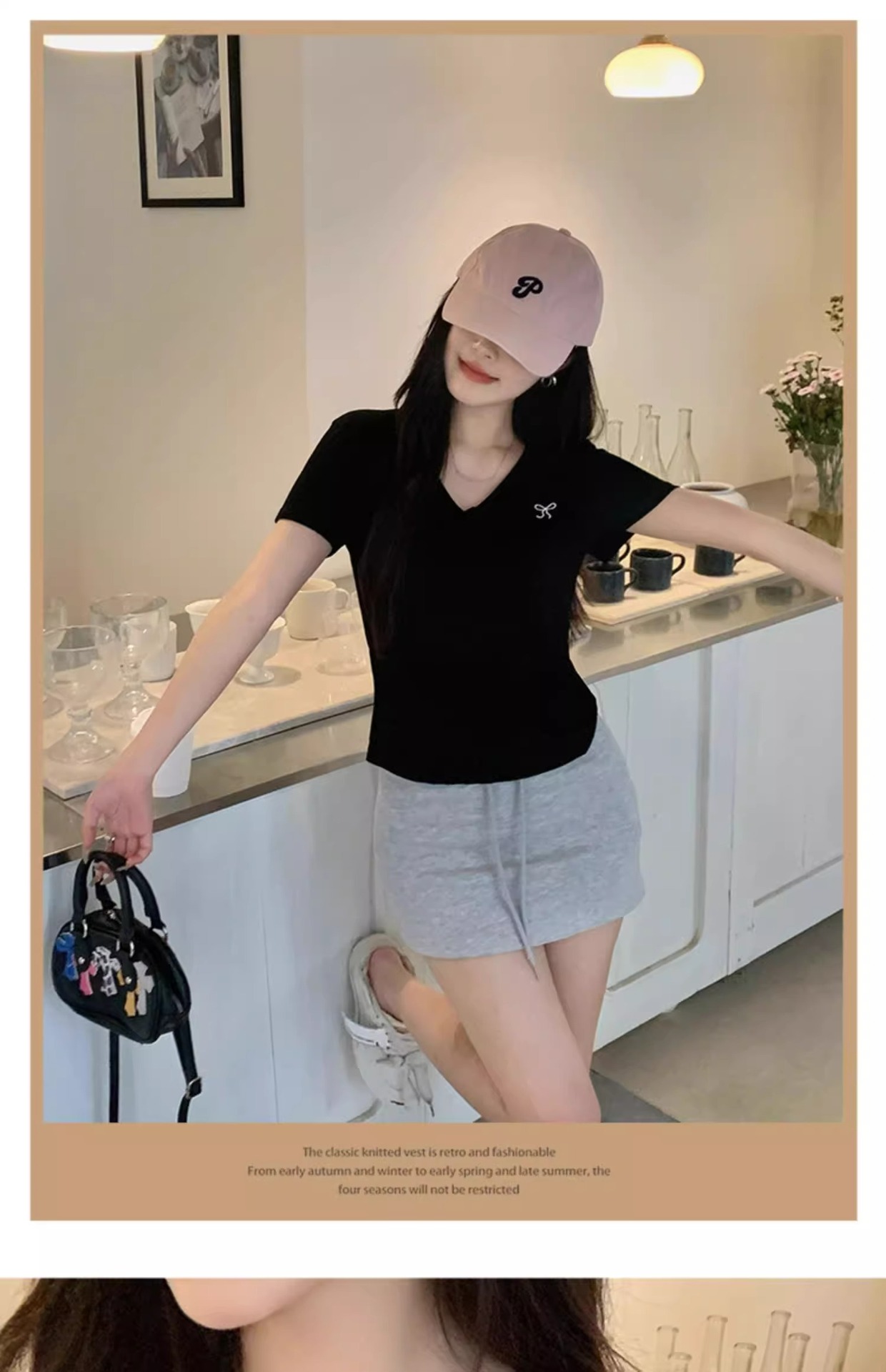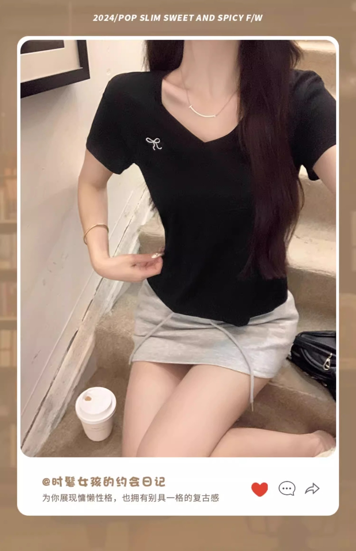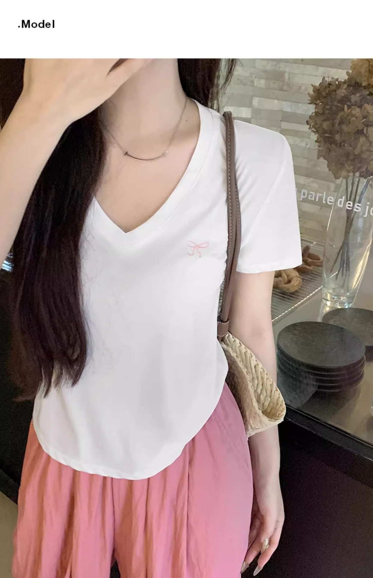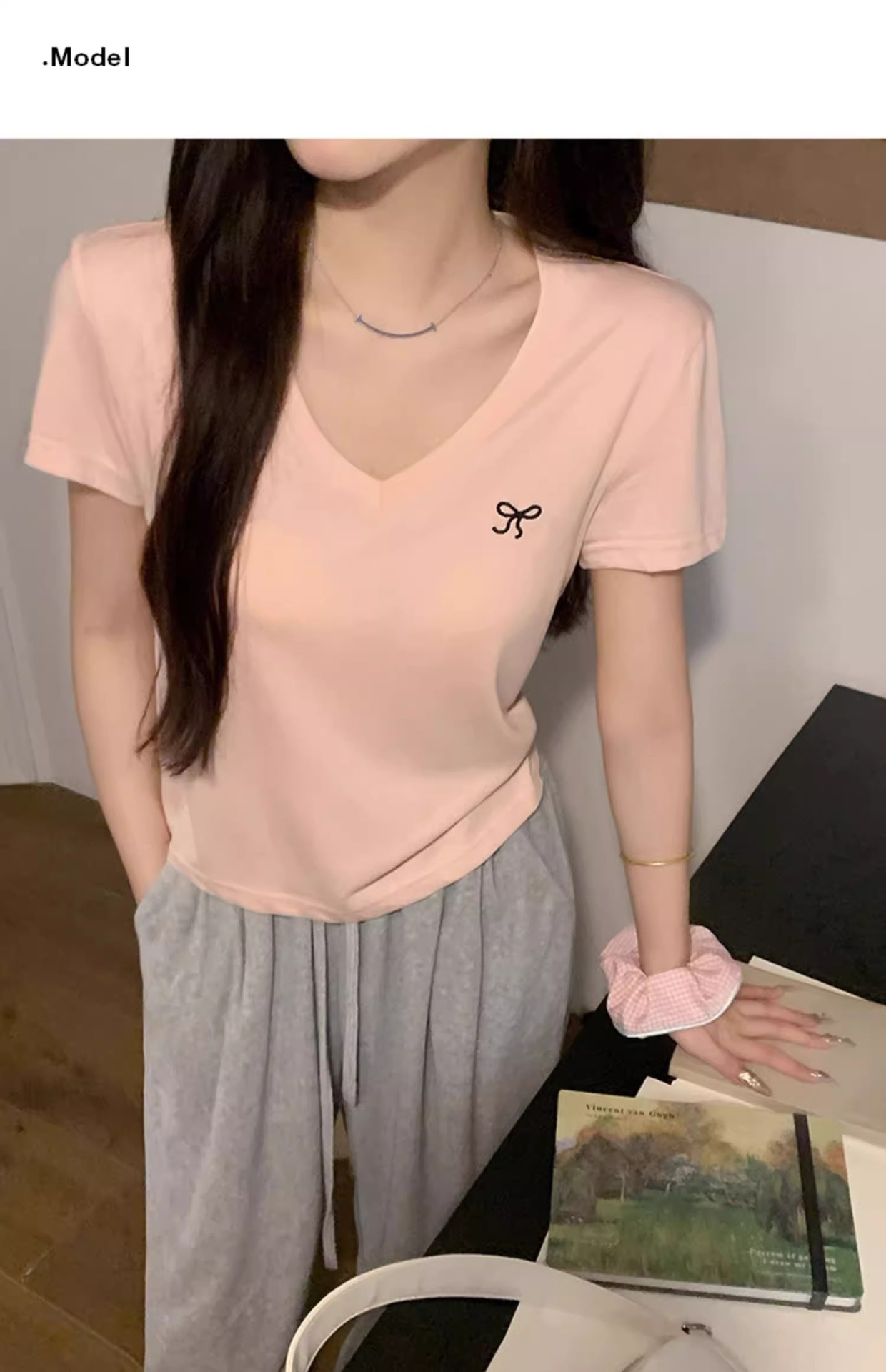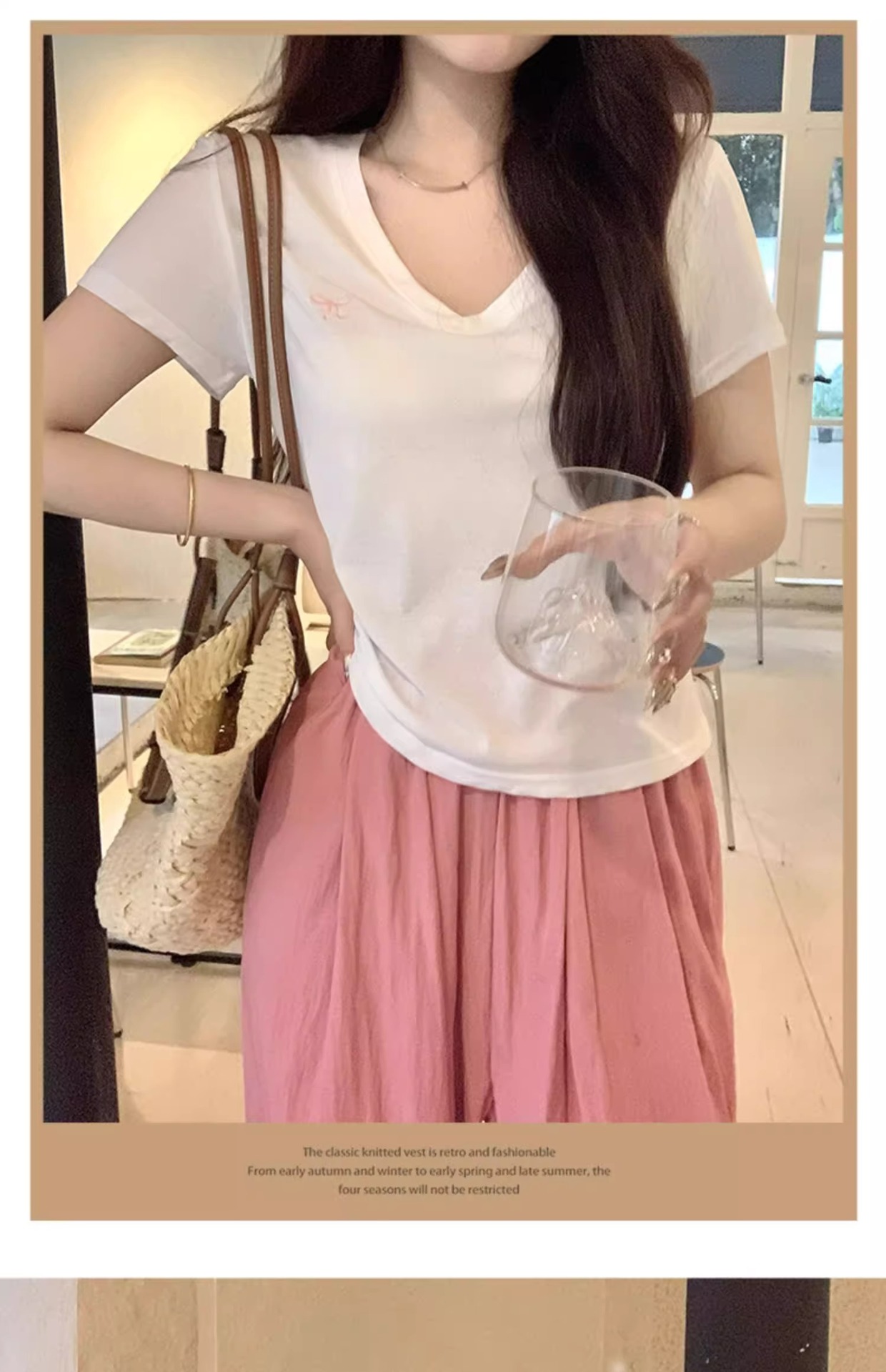 欧货v领短袖t恤女夏装新款正肩高级感休闲宽松体恤ins潮