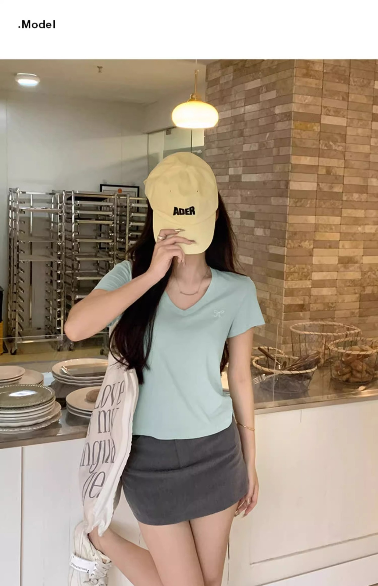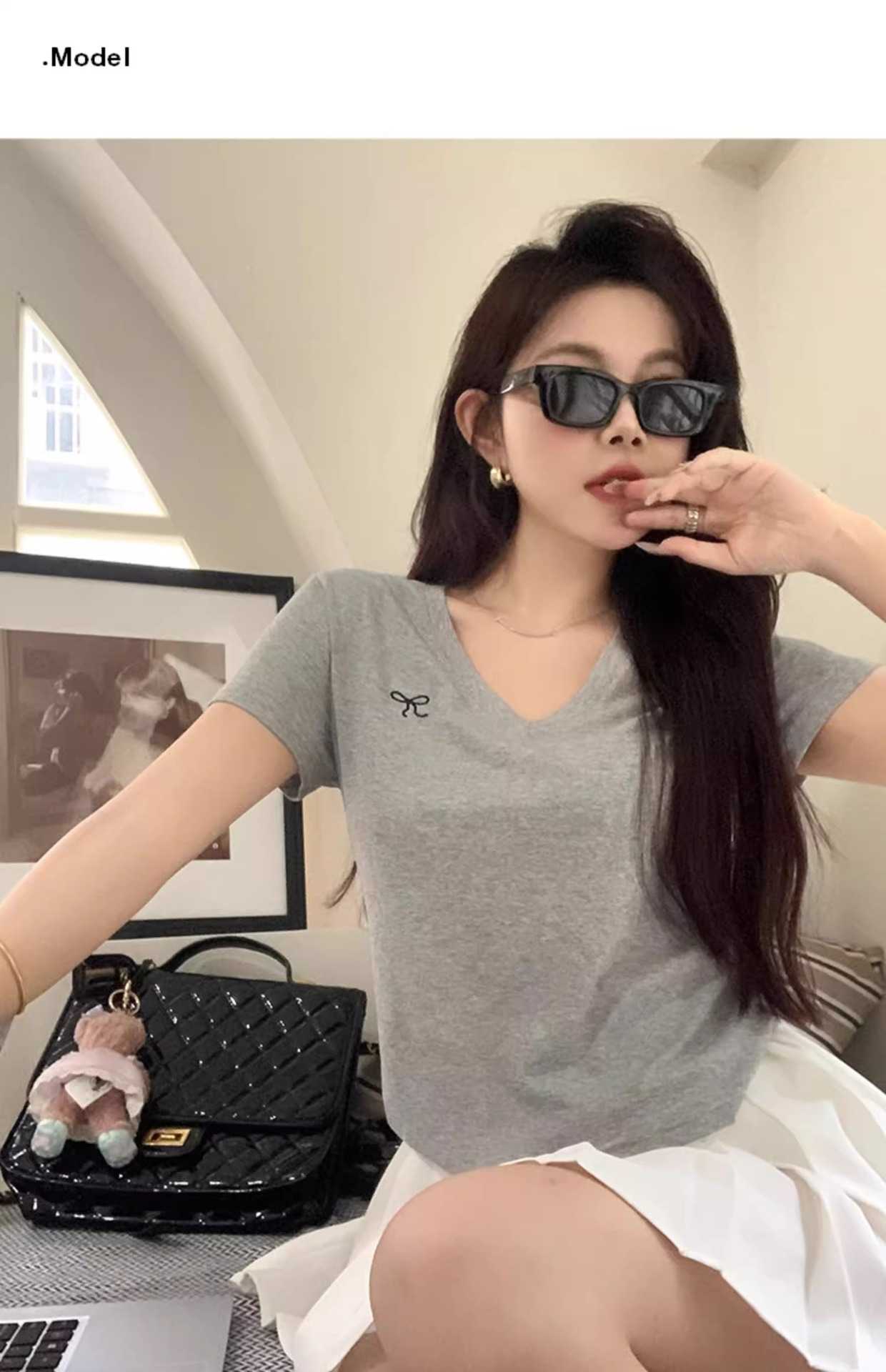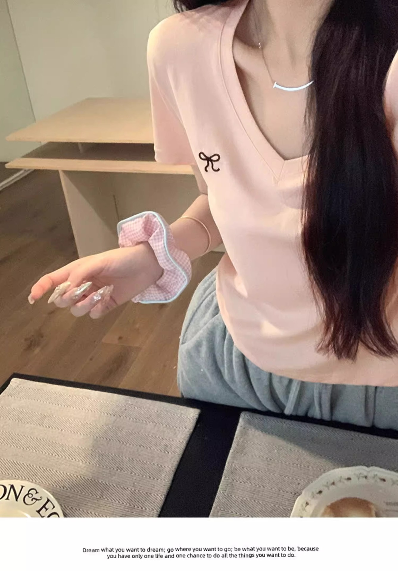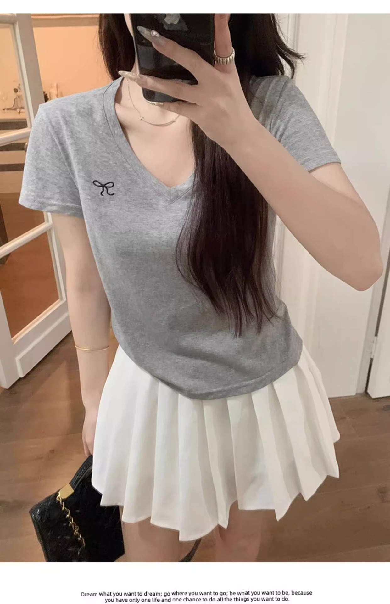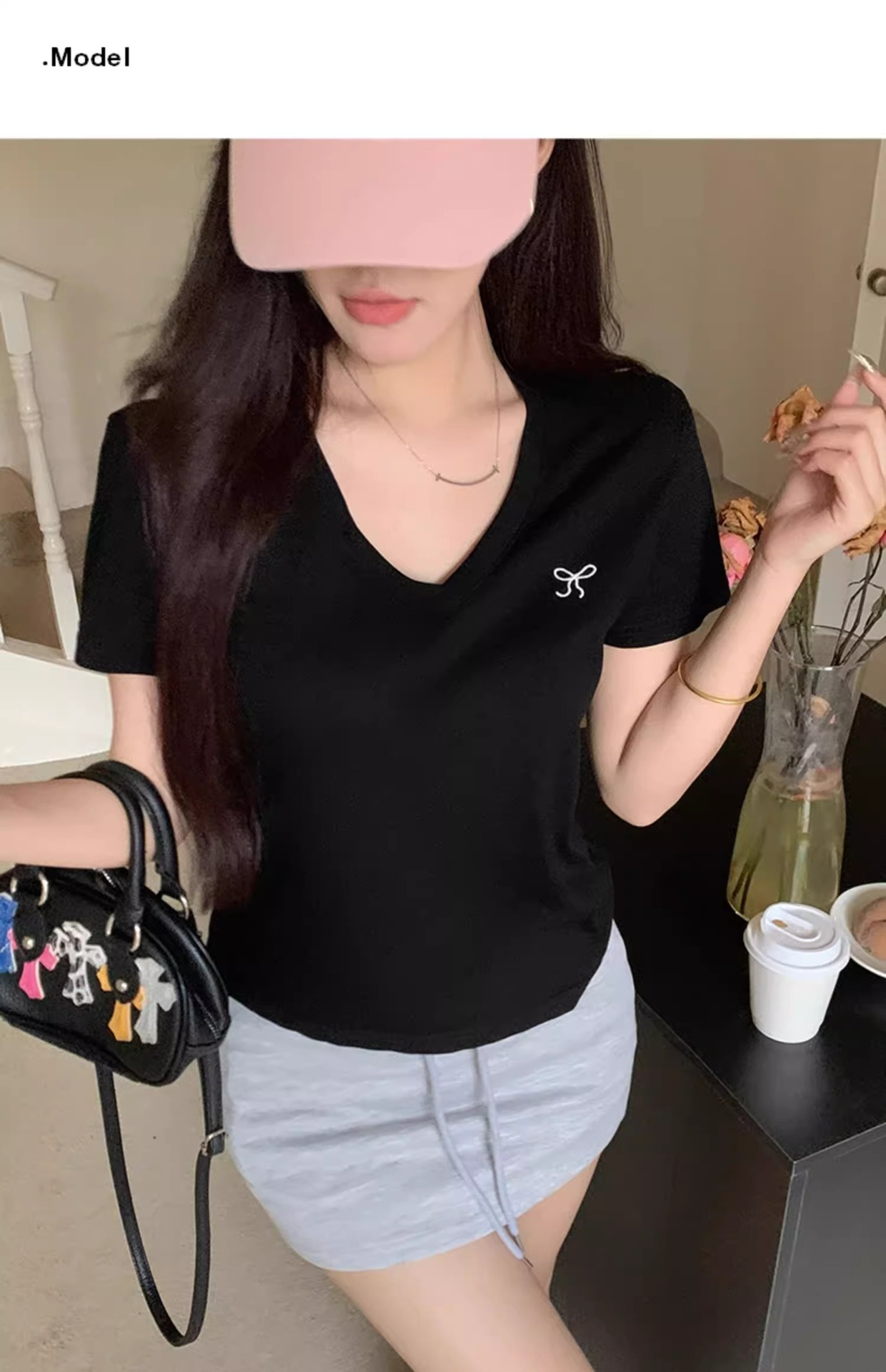 欧货v领短袖t恤女夏装新款正肩高级感休闲宽松体恤ins潮