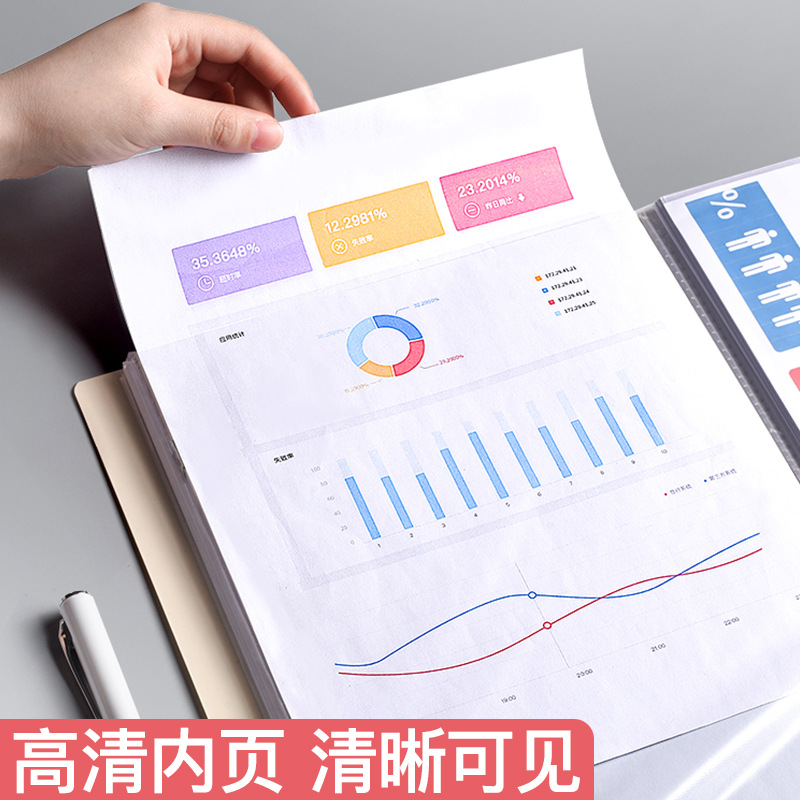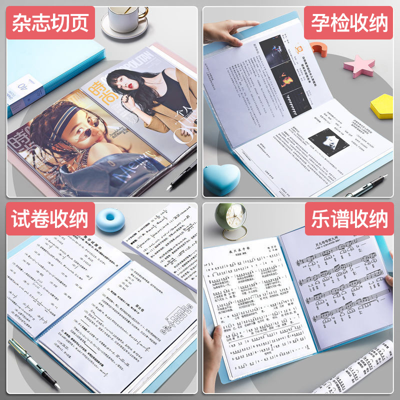 a4莫兰迪色资料册透明多层插页文件夹学生奖状试卷收纳册孕检乐谱