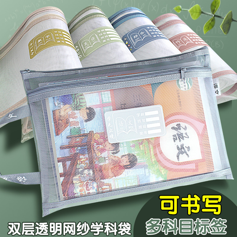 A4加厚收纳试卷文件袋学生科目分类双层透明网纱大容量拉链式分科