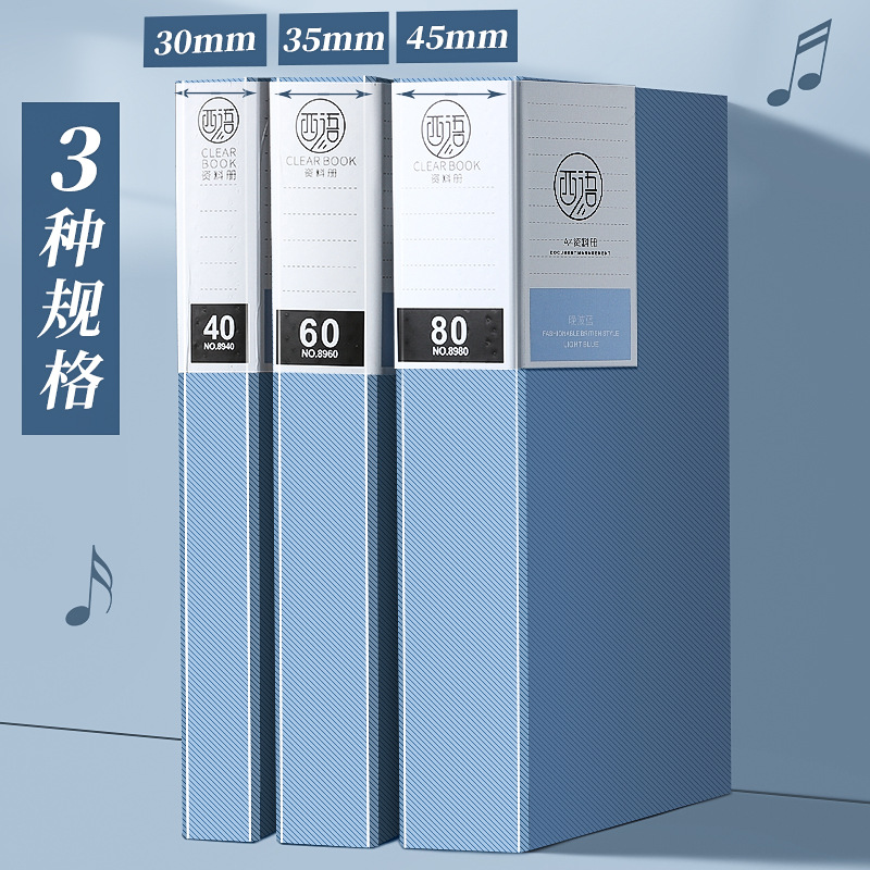 资料册a4文件夹透明插页袋学生试卷奖状收纳乐谱档案合同夹100页