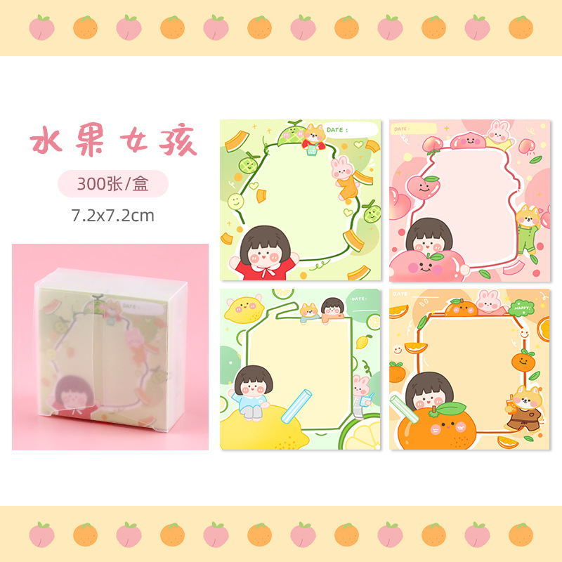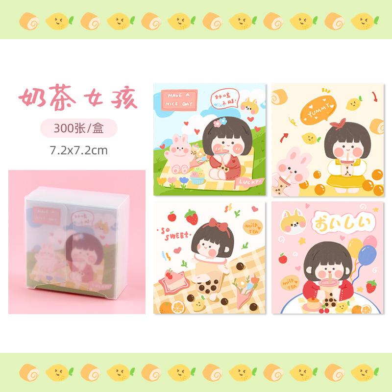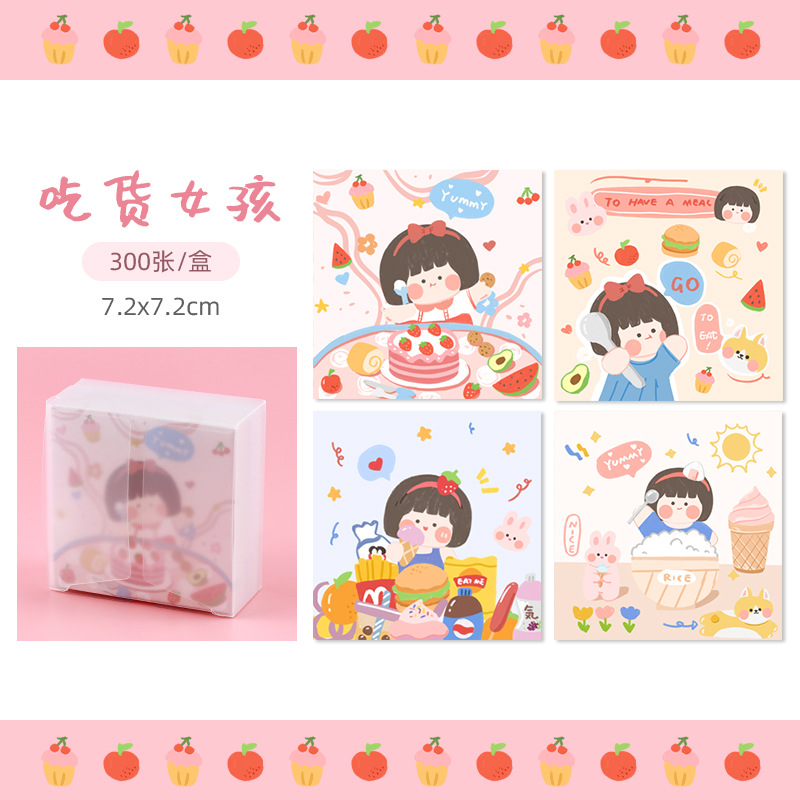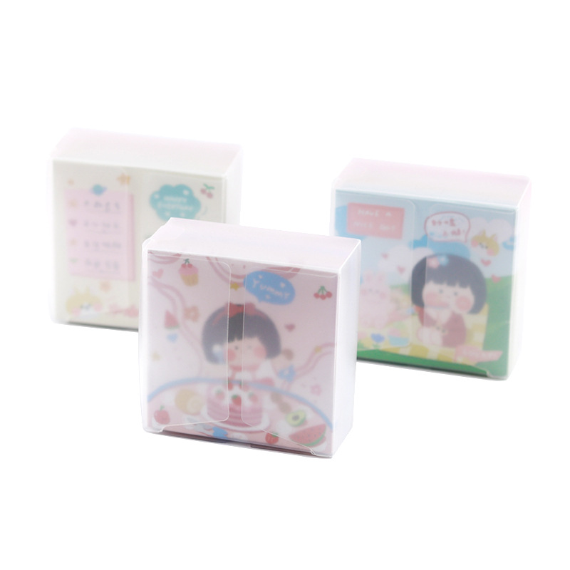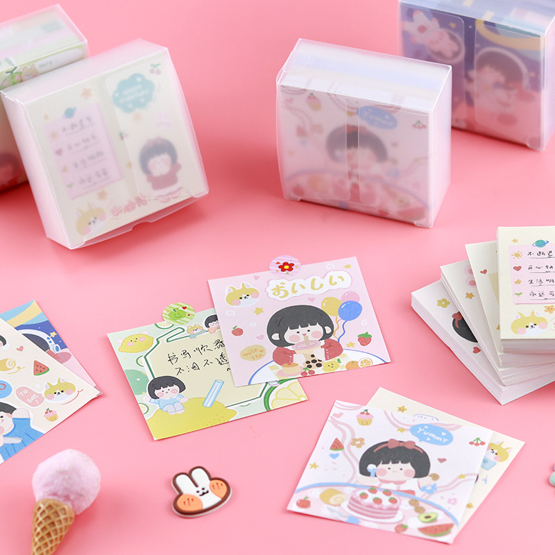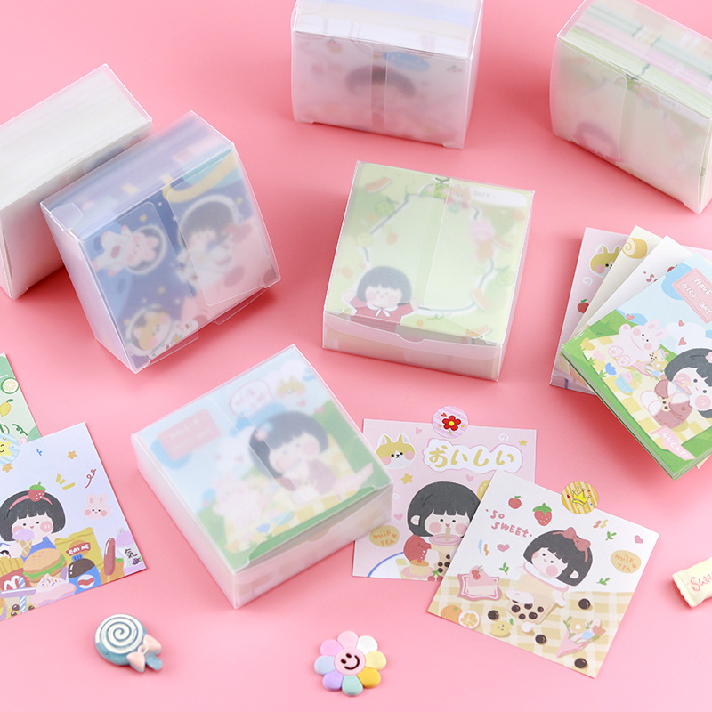 卡通便签纸可爱励志女孩便利签PP盒装无粘性手账纸素材打底便签本