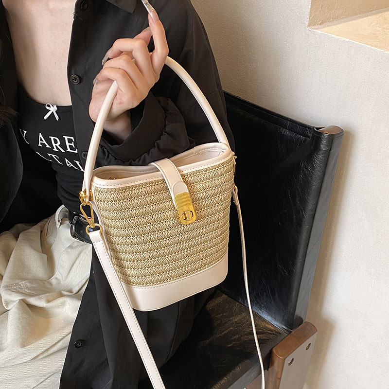 韩版ins休闲编织草编包包女新款度假风时尚手提斜挎包水桶包