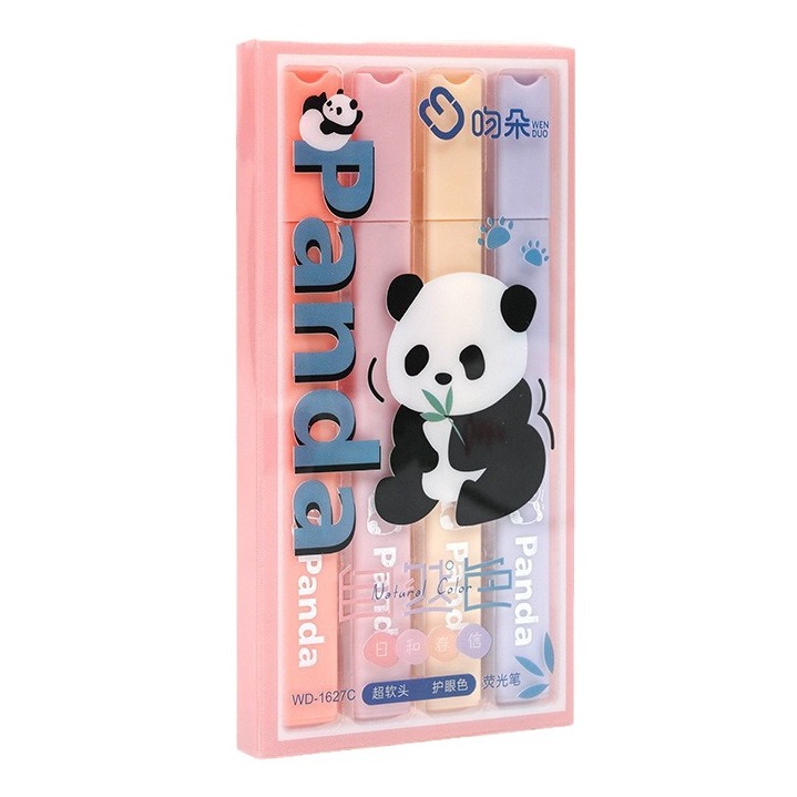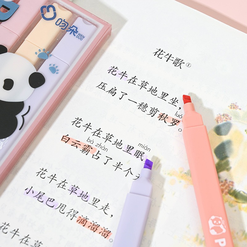 新款熊猫荧光笔自然色系划重点笔方杆可爱ins风高颜值斜头手账笔