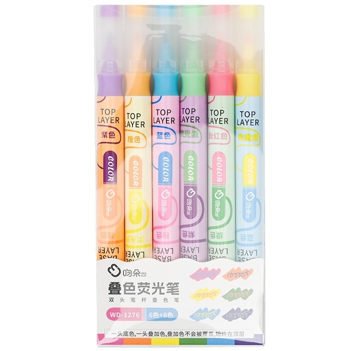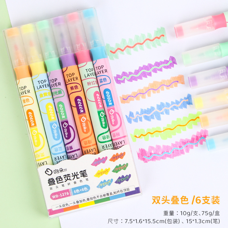 新款ins叠色双头荧光笔划重点笔学生彩色记号笔大容量标记手帐笔