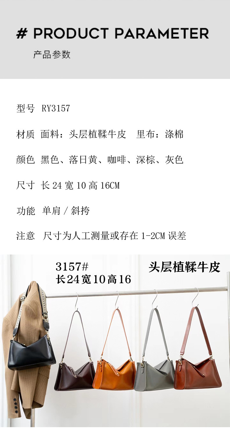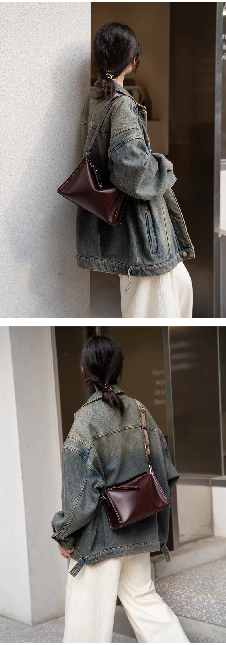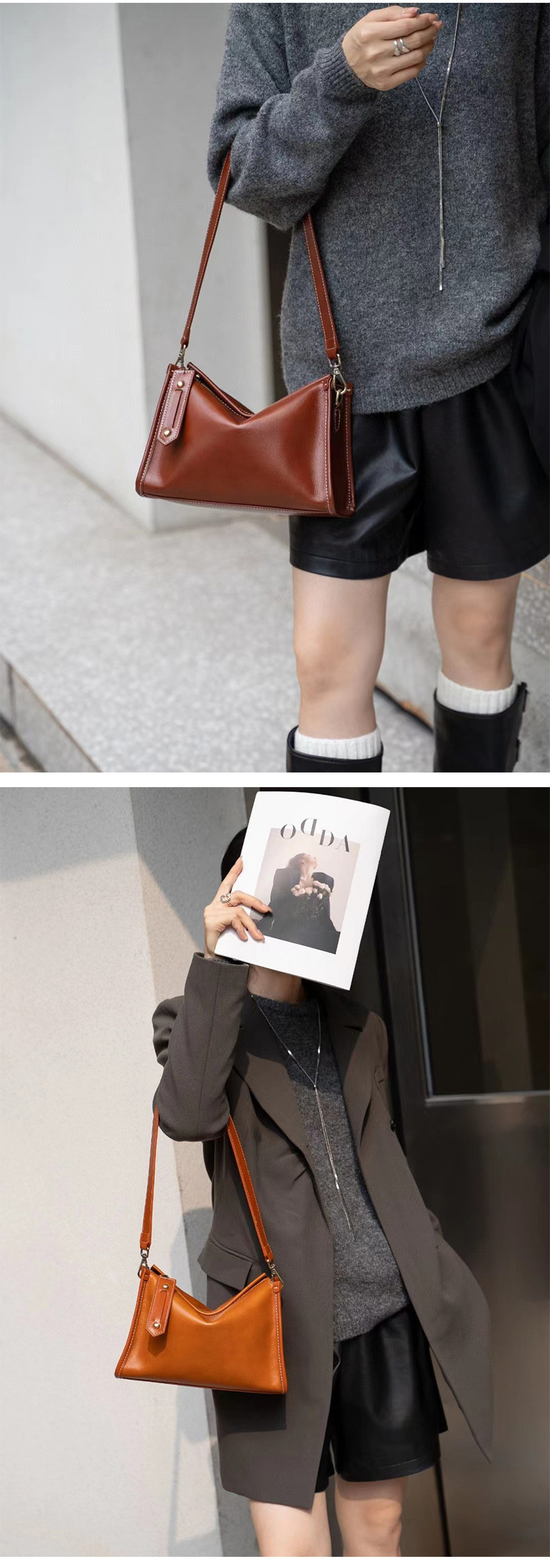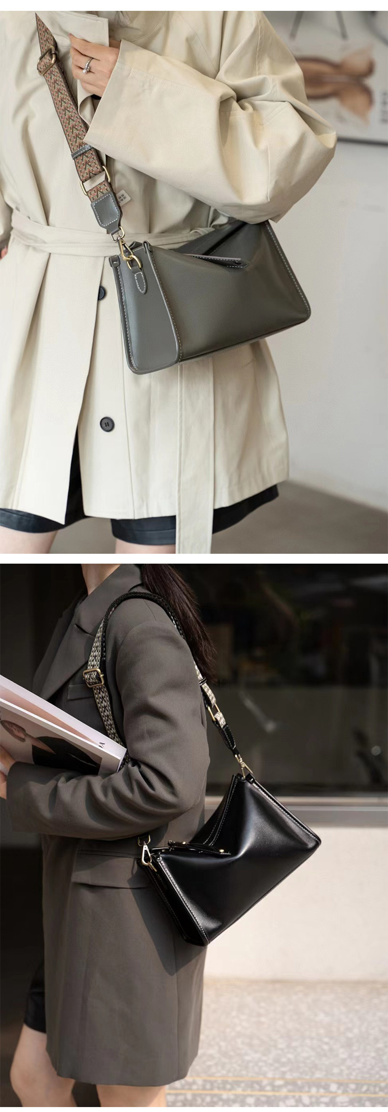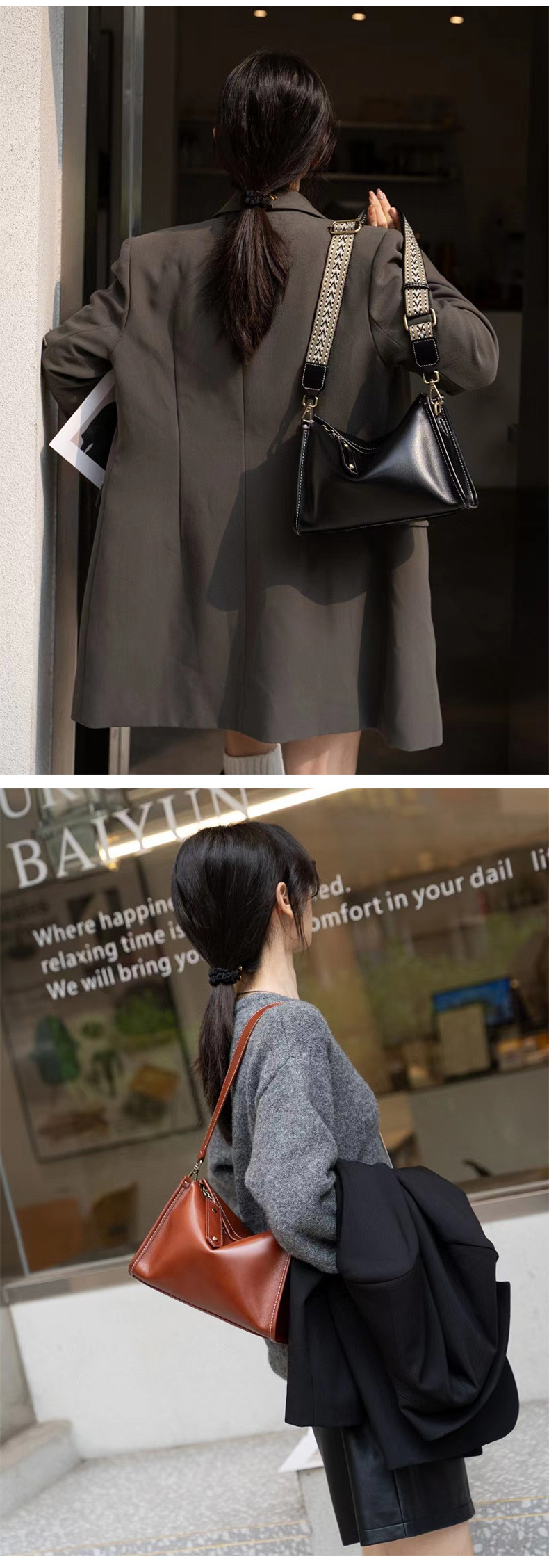 秋款小众设计牛皮腋下包单肩斜挎包手提真皮月牙水桶包女包