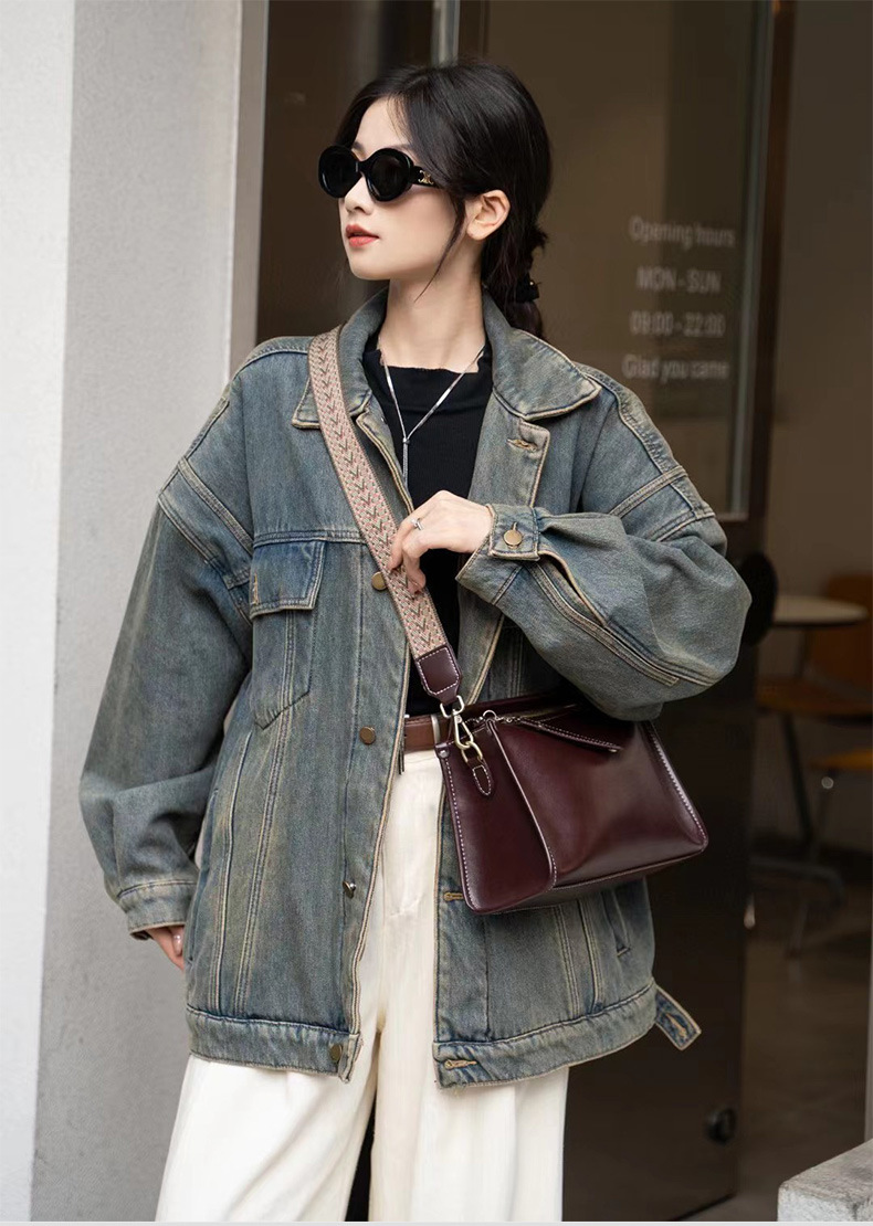 复古做旧腋下包美式包包废土风秋冬新款单肩手提铆钉法棍包