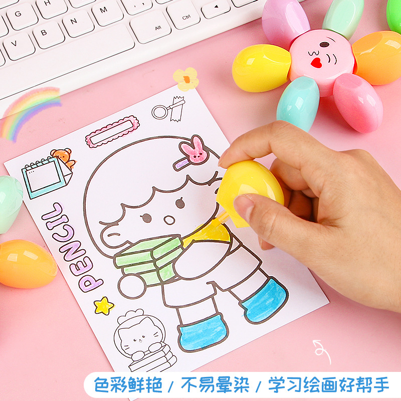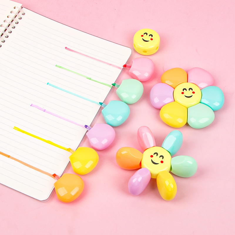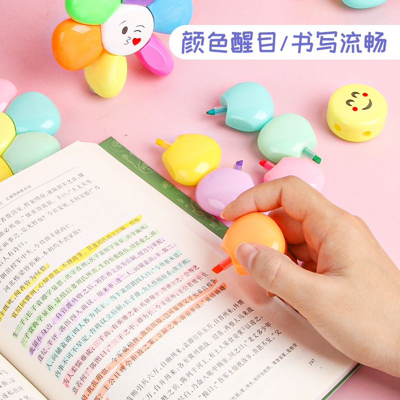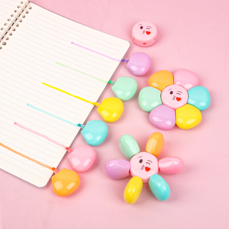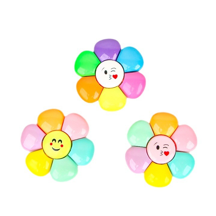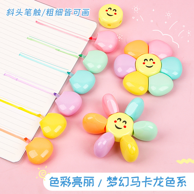 创意太阳花荧光笔高颜值卡通六色花瓣轮廓笔旋转解压手帐笔