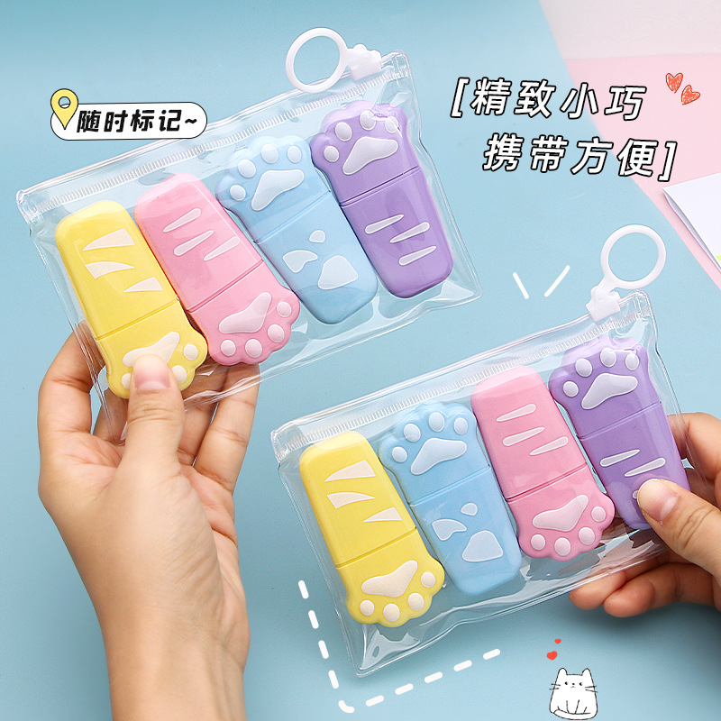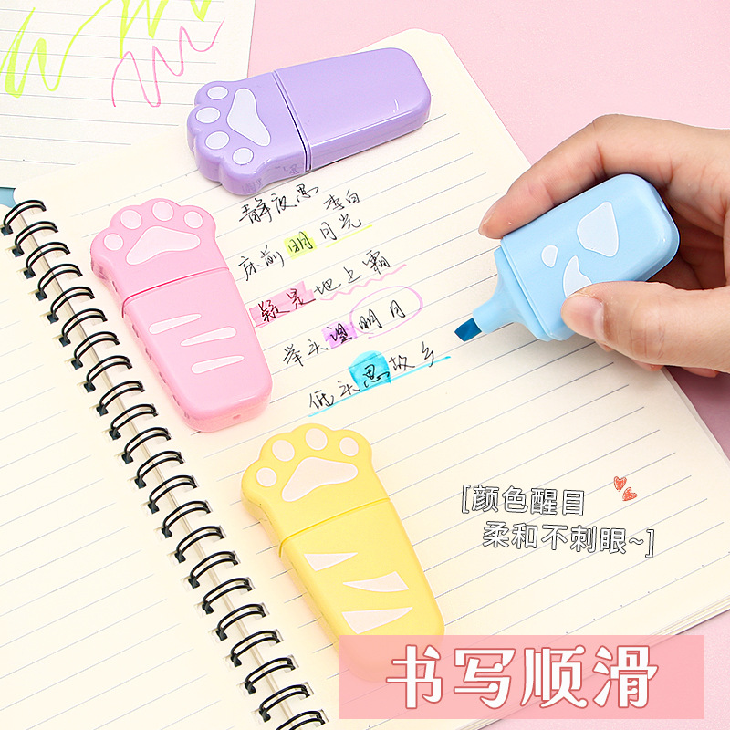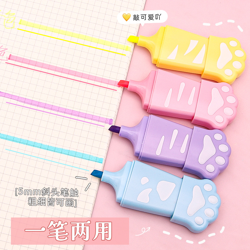 创意猫爪荧光笔小学生大容量划重点专用护眼记号笔高颜值文具