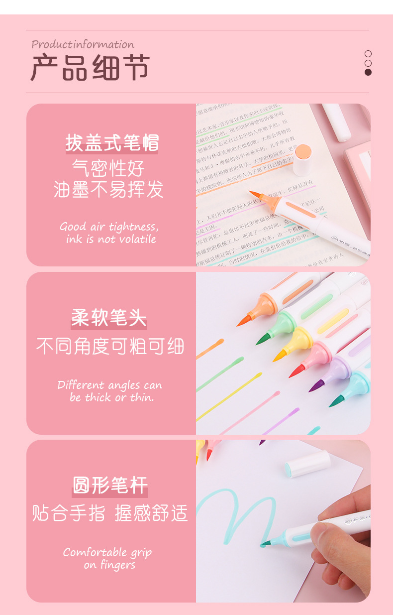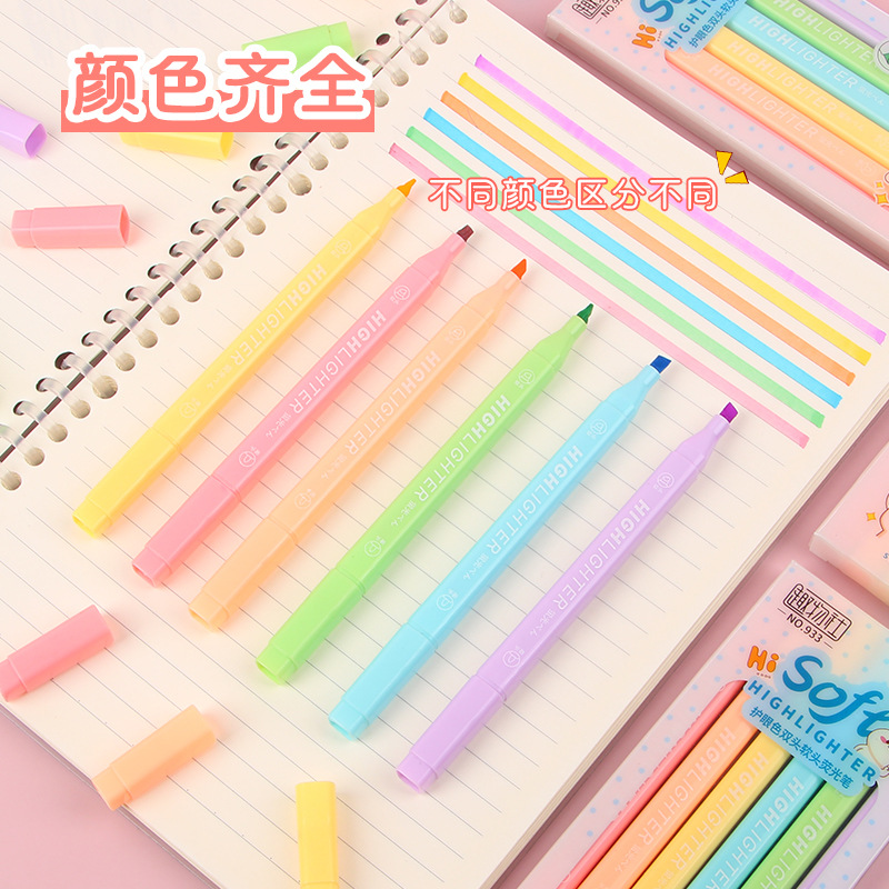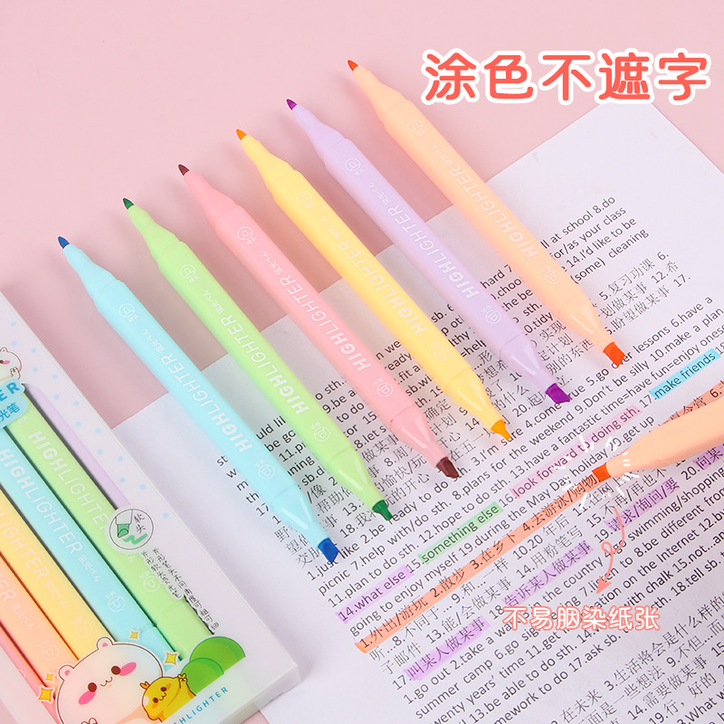 马卡龙双头荧光笔软头ins学生标记划重点记号笔大容量手帐笔