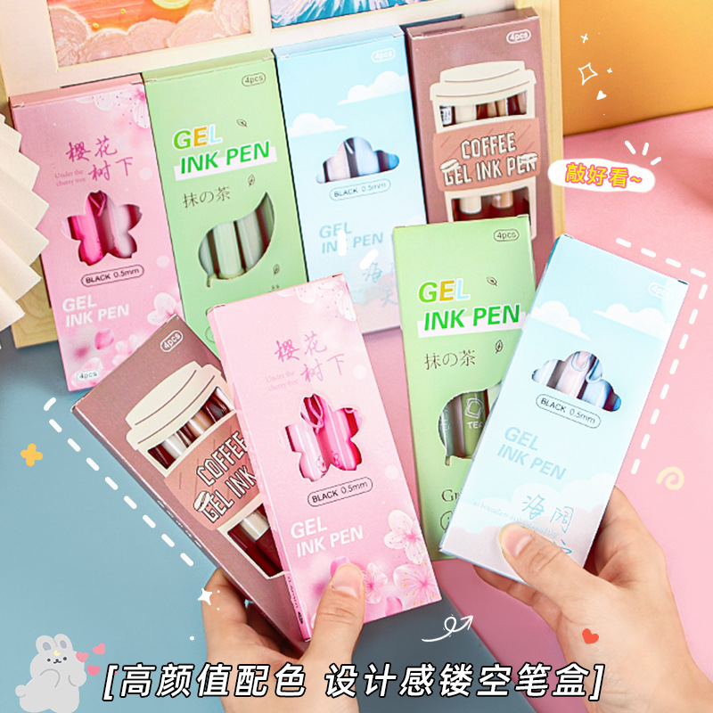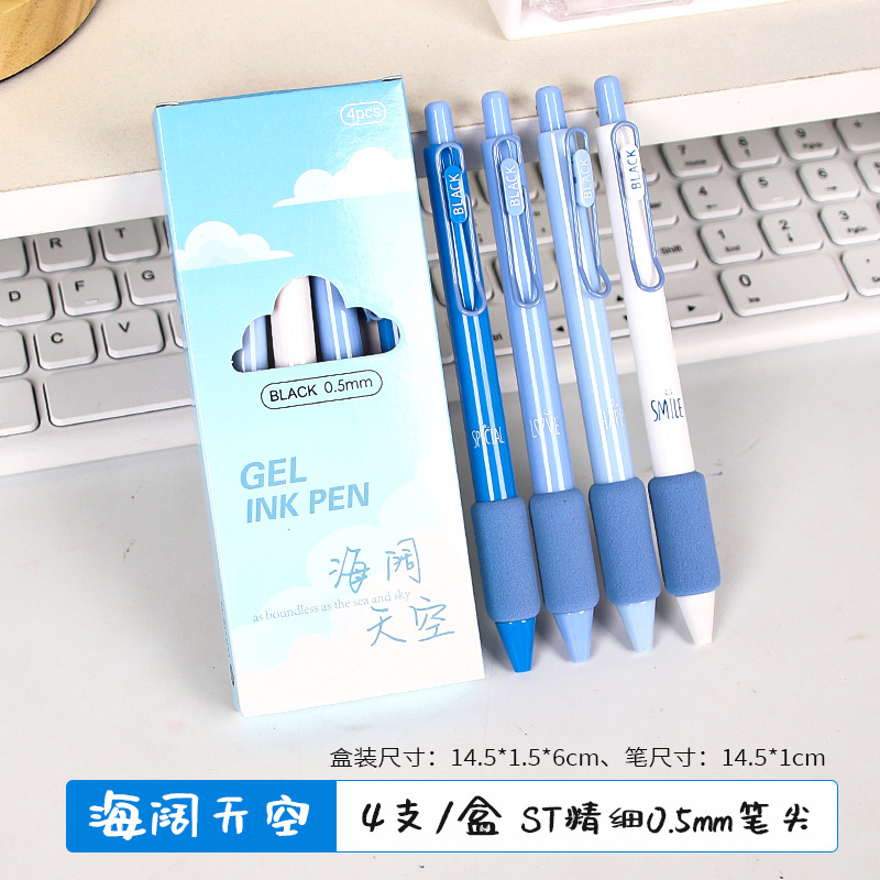 新款欧包中性笔软握按动笔女生0.5mm高颜值软绵绵握套签字笔文具