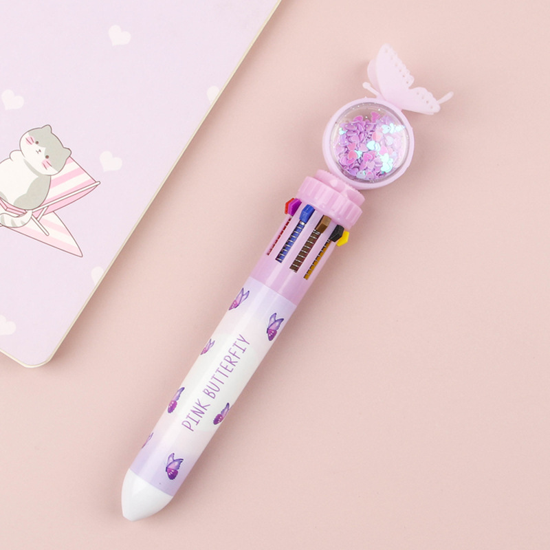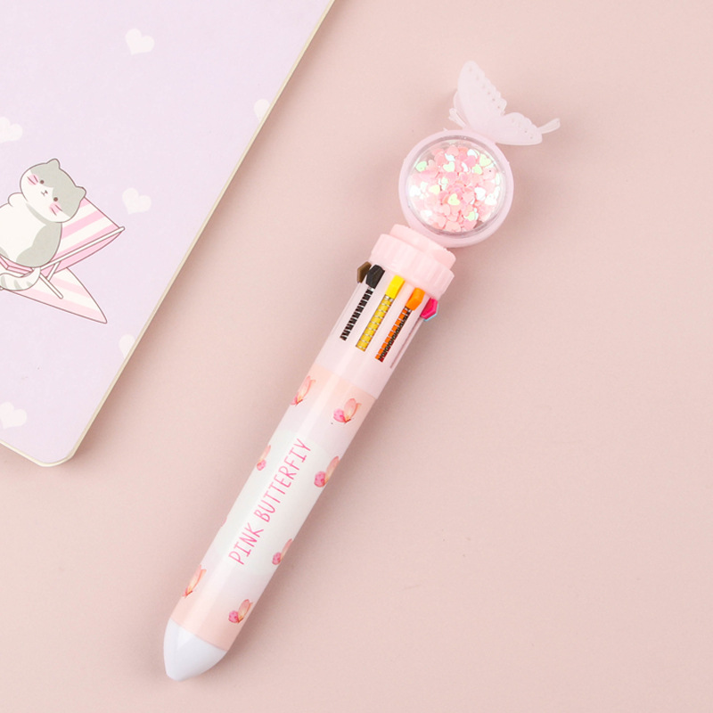 卡通兔10色圆珠笔创意可爱按压式手帐笔学生多功能考试办公签字笔