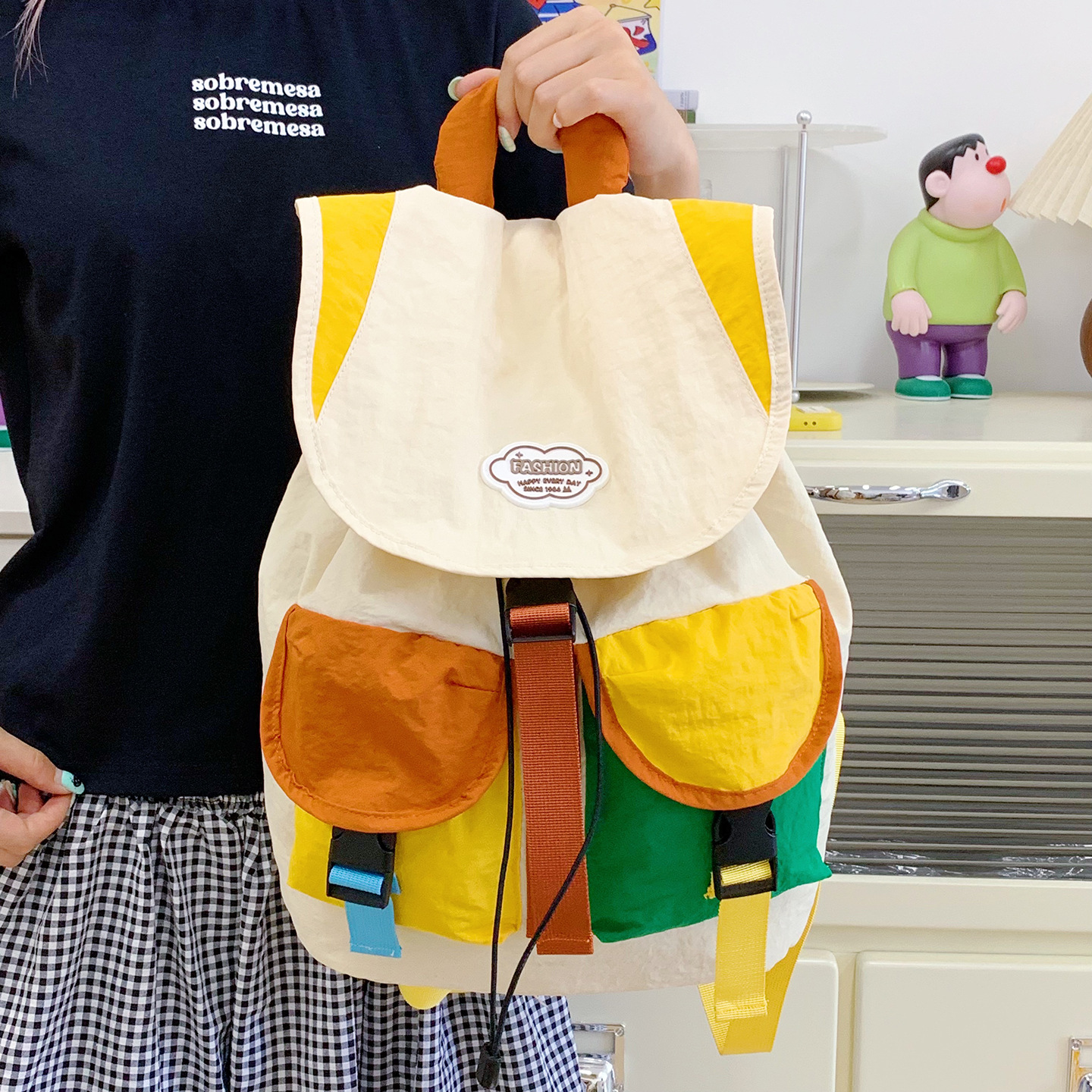 韩版可爱ins风拼色卡通动物双肩包女初高中学生书包电脑旅行背包