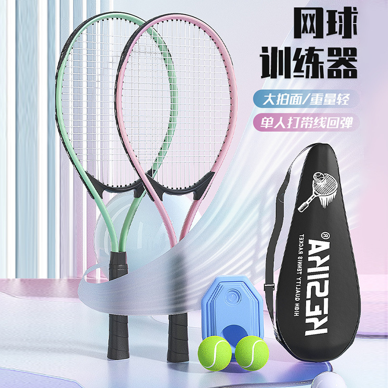 新款网球训练器初学者男女成人儿童带线回弹网球拍单打套装