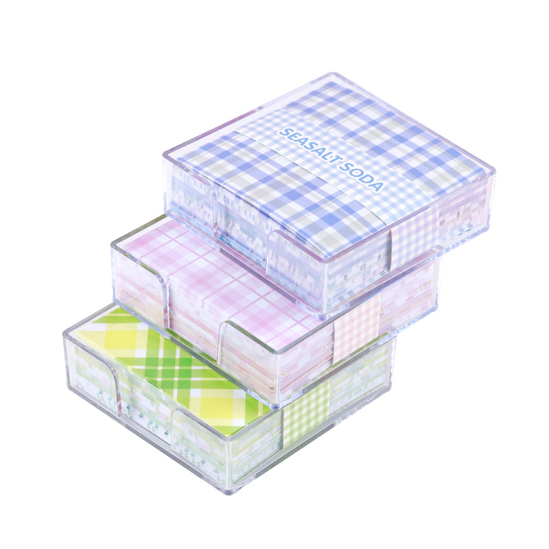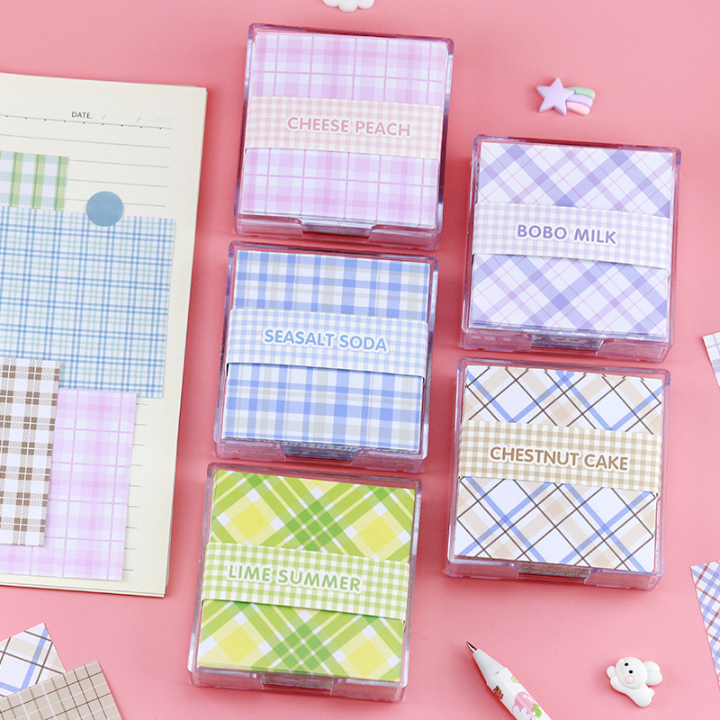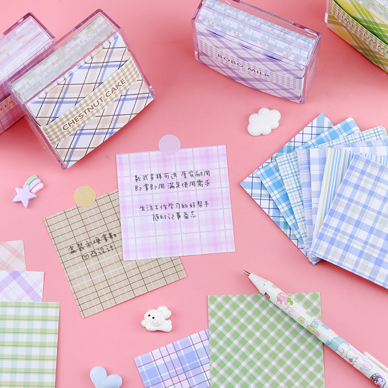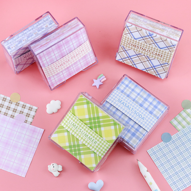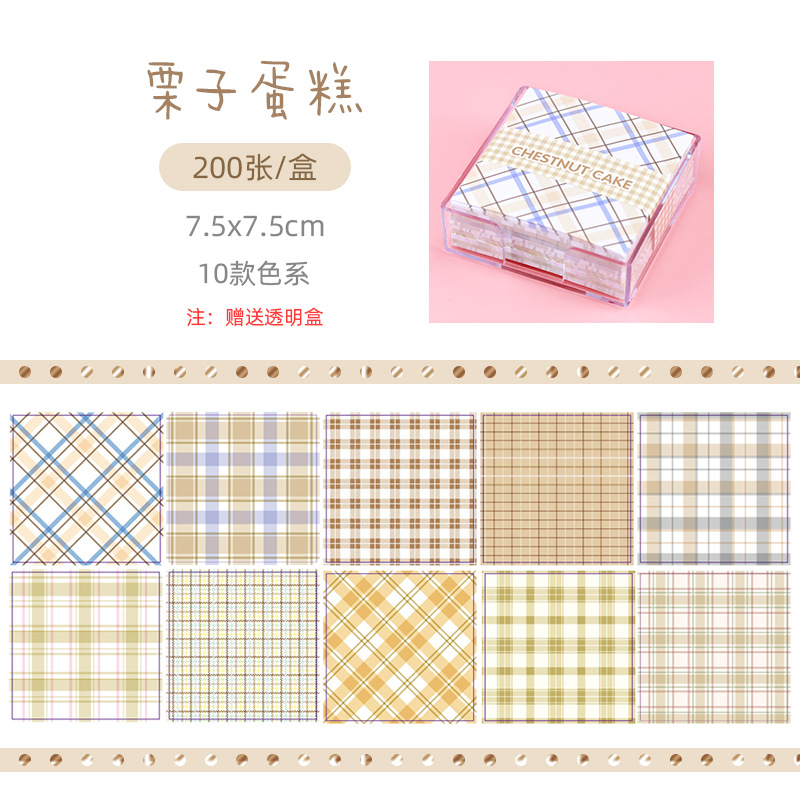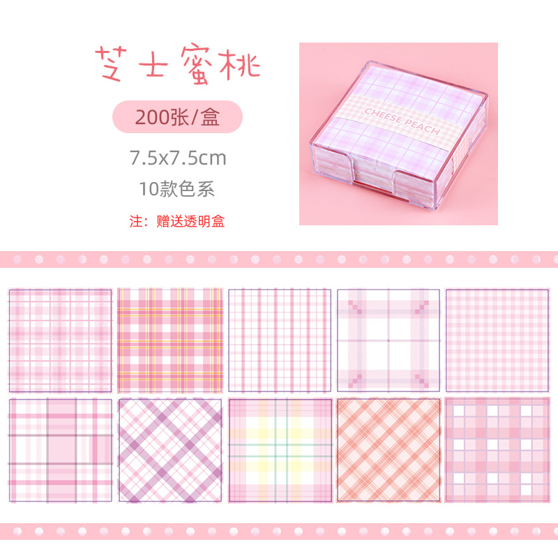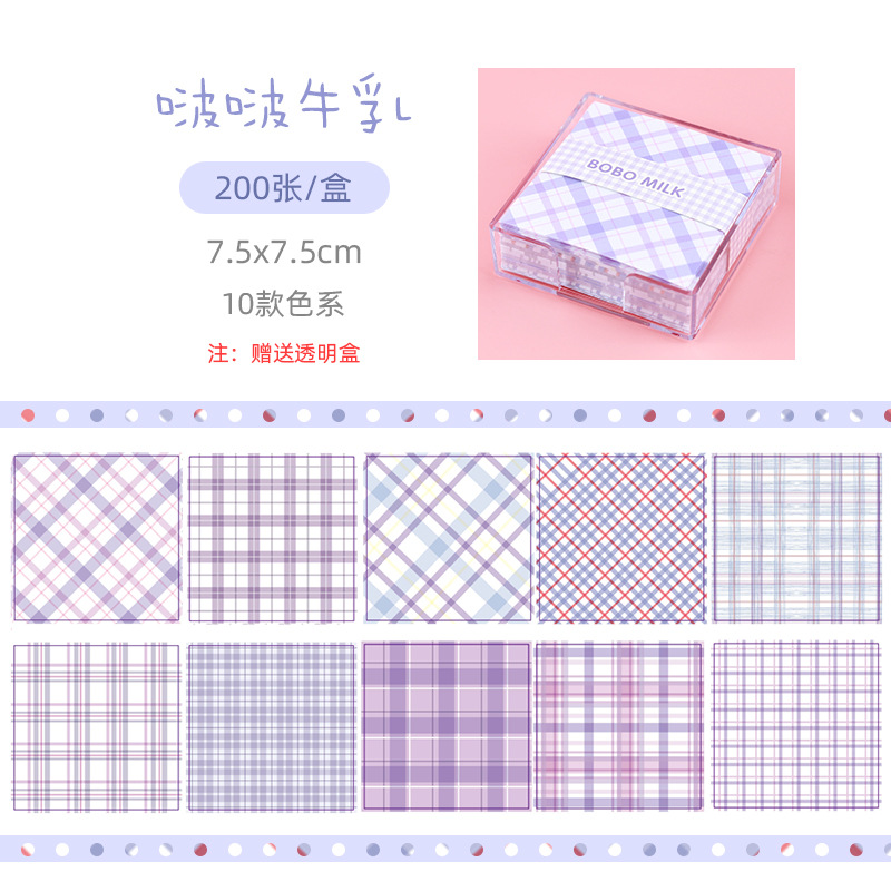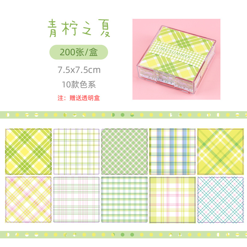 ins风格子便签200张入透明盒装无粘性手账纹理素材便签纸