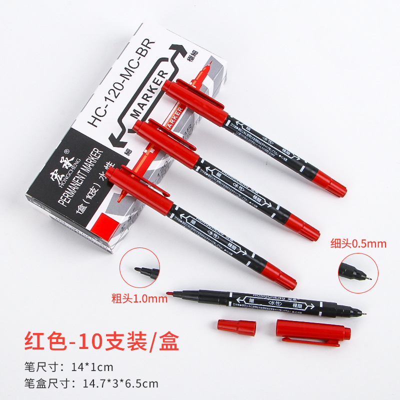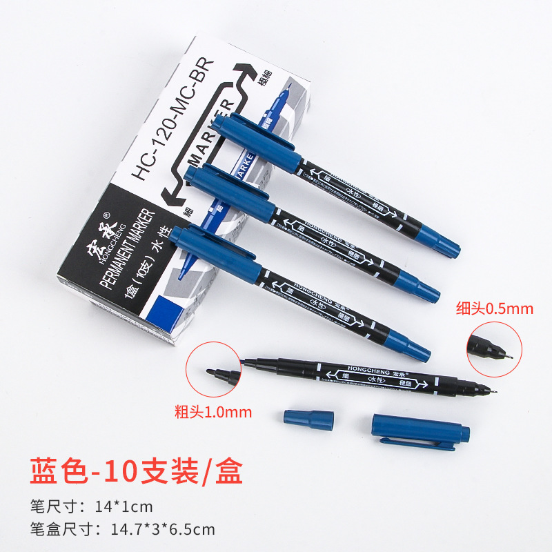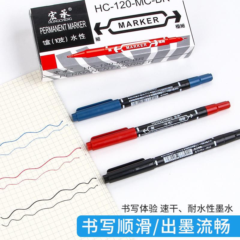 水性小双头记号笔学生办公大容量黑/红/蓝色勾线笔标记笔文具