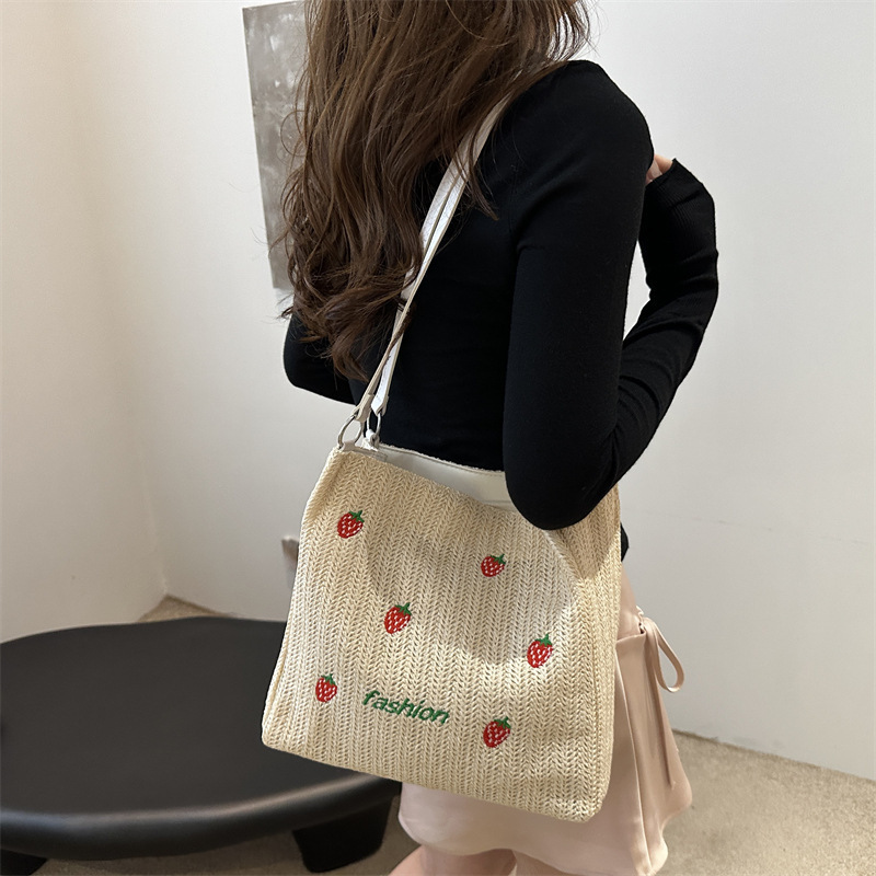夏天草编包包女夏季新款百搭单肩手提编织包简约大容量沙滩包