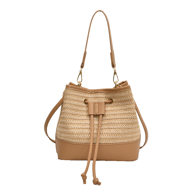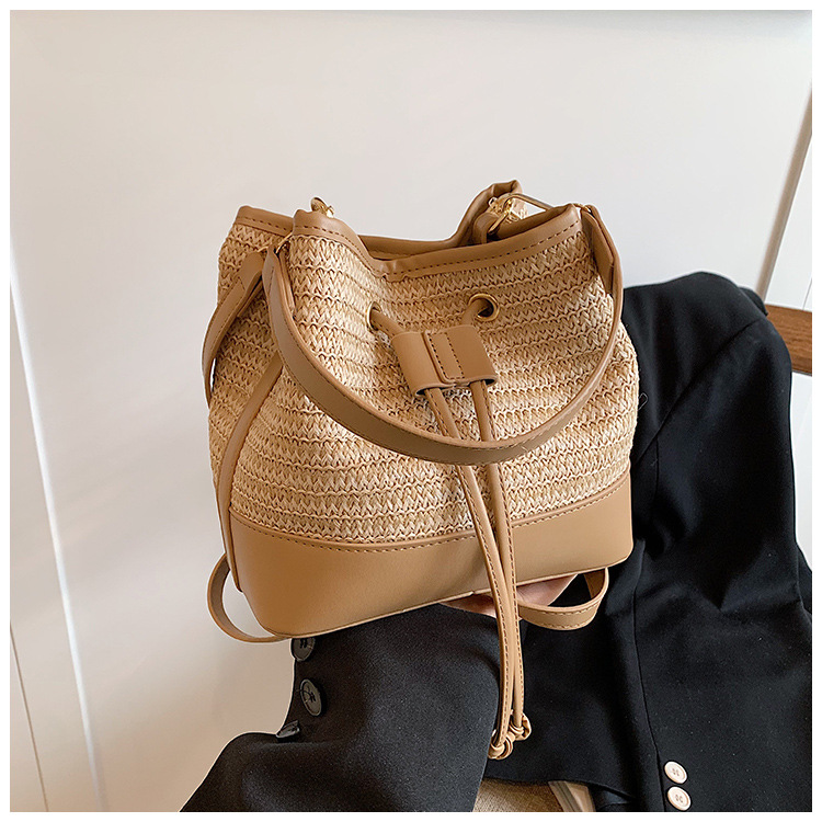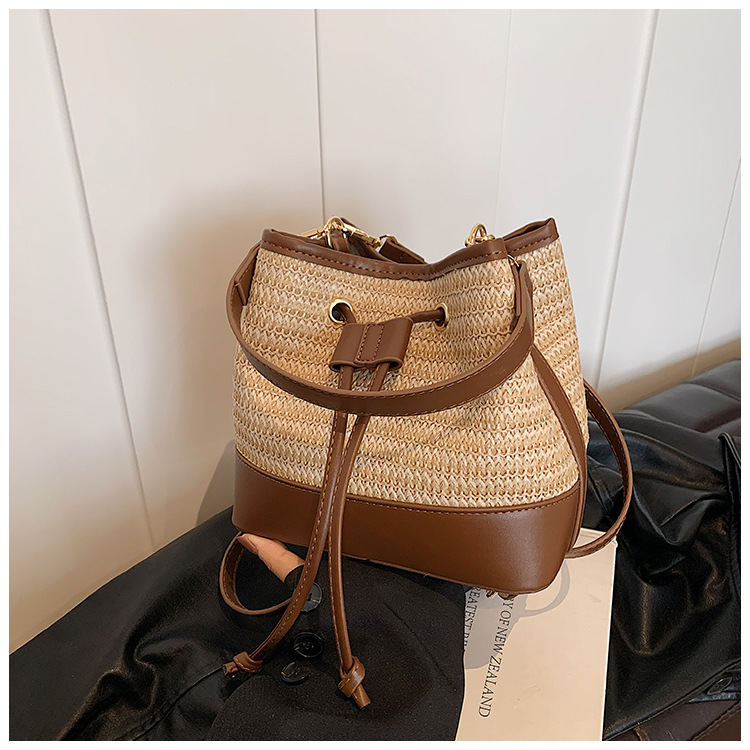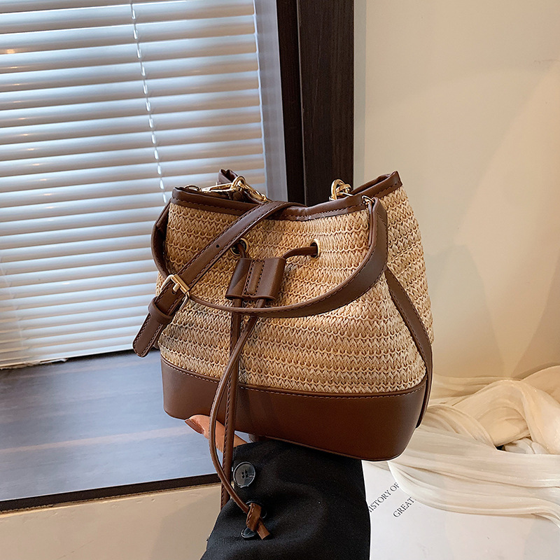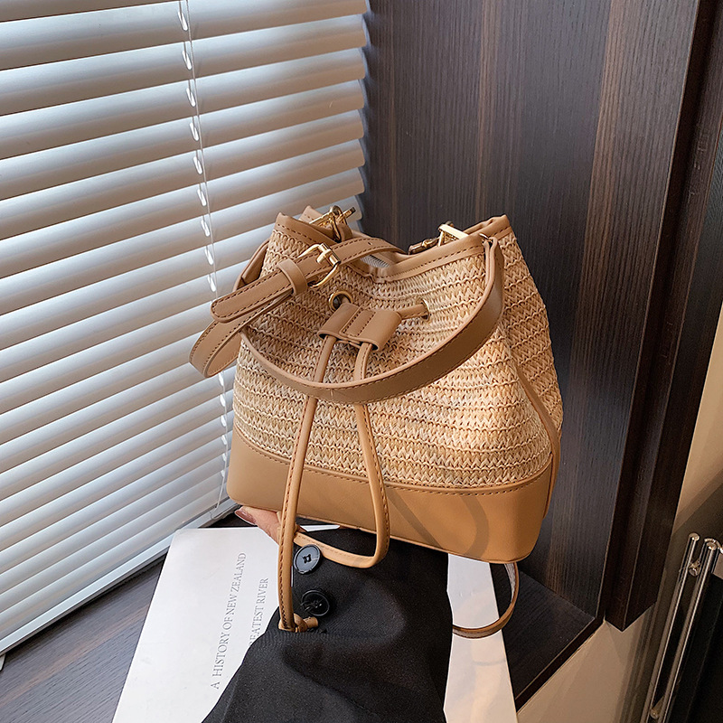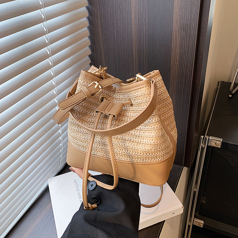 高级质感小包包女海边新款小众斜挎包编织女士手提草编水桶包