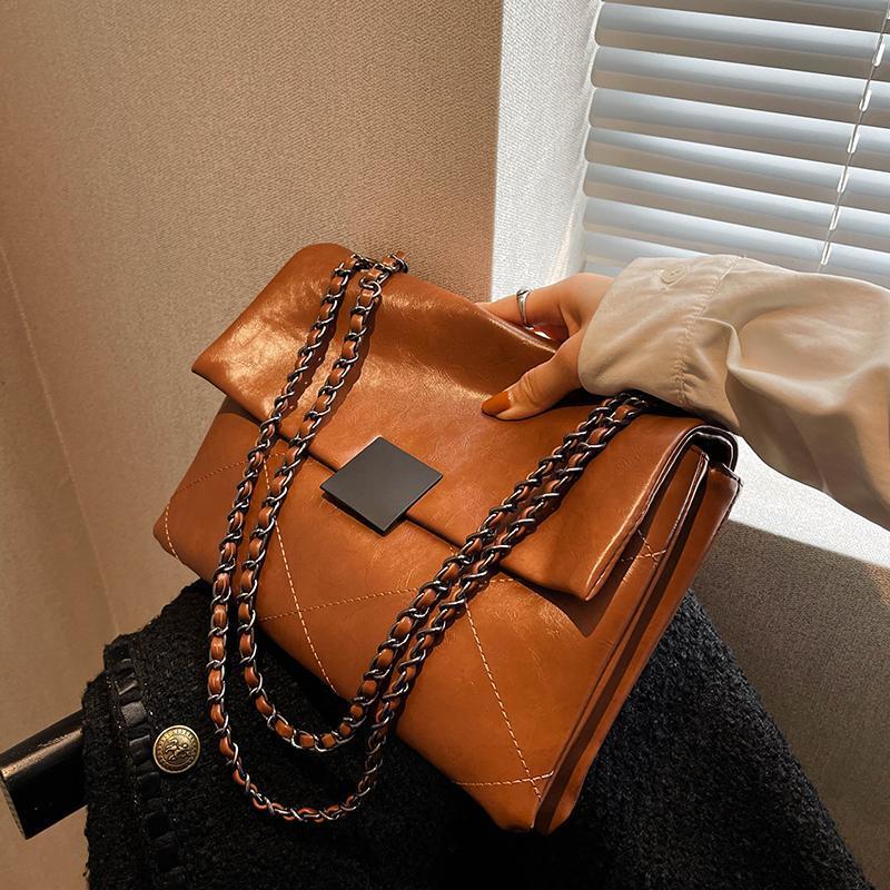 高级质感小包包女新款时尚菱格链条斜挎包小众复古腋下邮差包