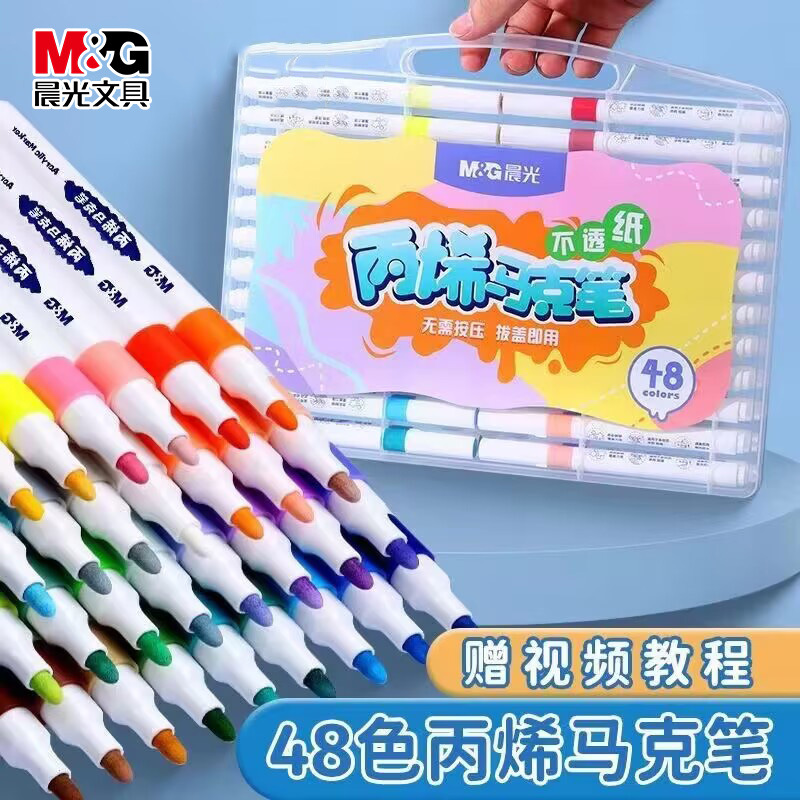 晨光丙烯马克笔套装防水不透纸儿童无毒水彩笔学生绘画用批发3313