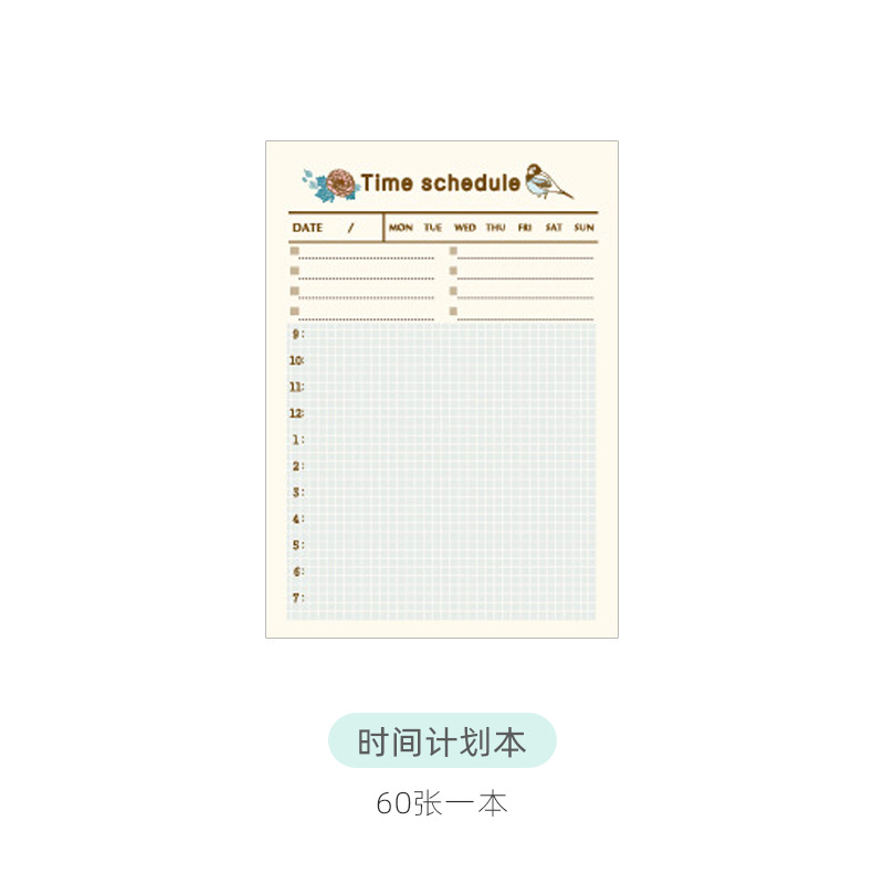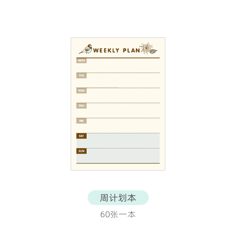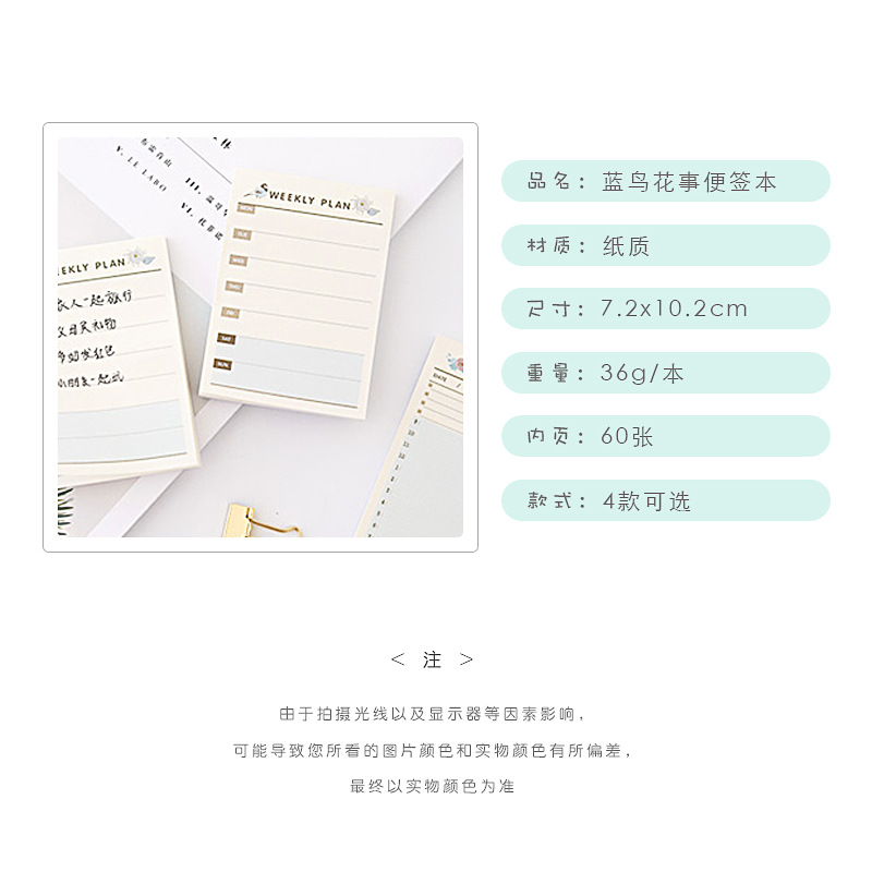 蓝鸟花事计划本便签本 便携周计划本学习时间日程表每日备忘list