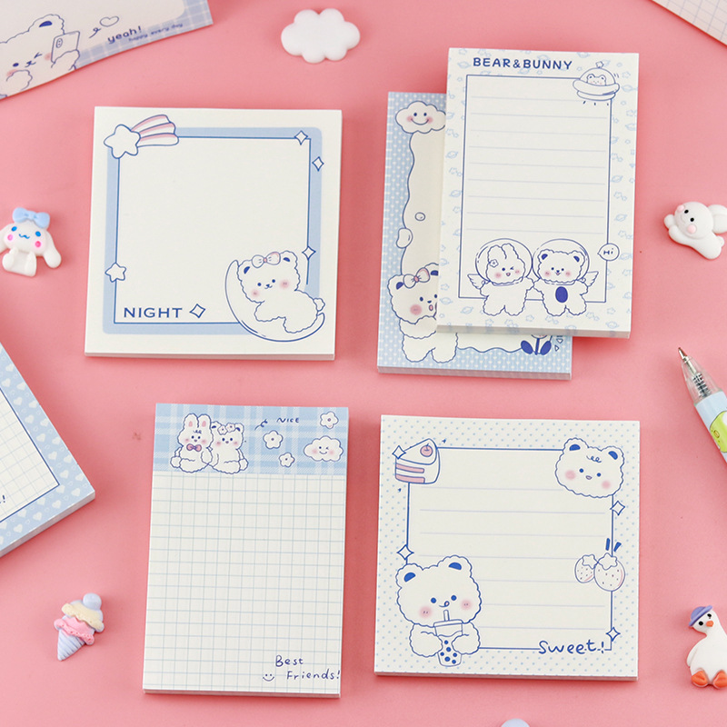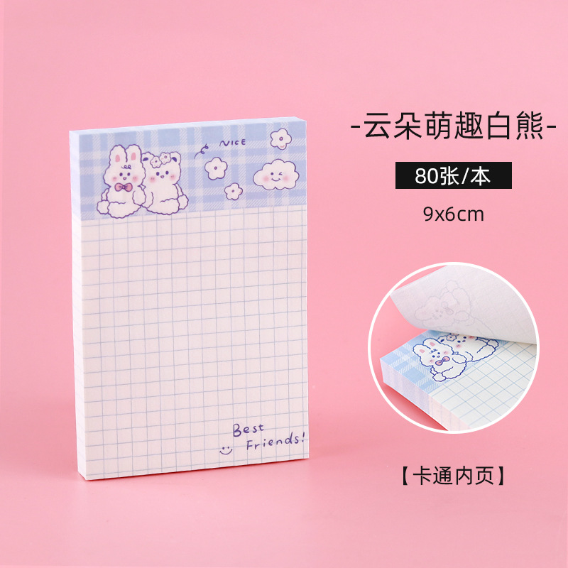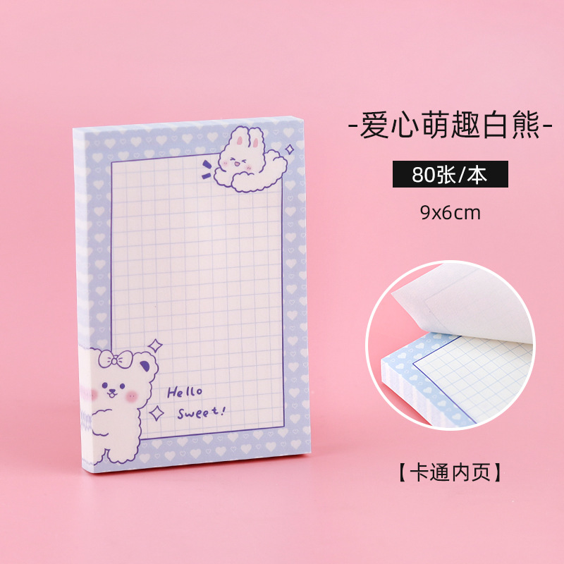 盐甜系便利贴ins小清新萌趣白熊高颜值有粘性便签学生可爱便签贴