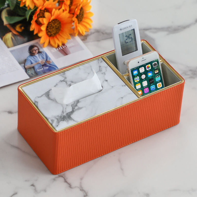 纸巾盒客厅轻奢高级抽纸家用桌面多功能遥控器皮革木质收纳盒ins