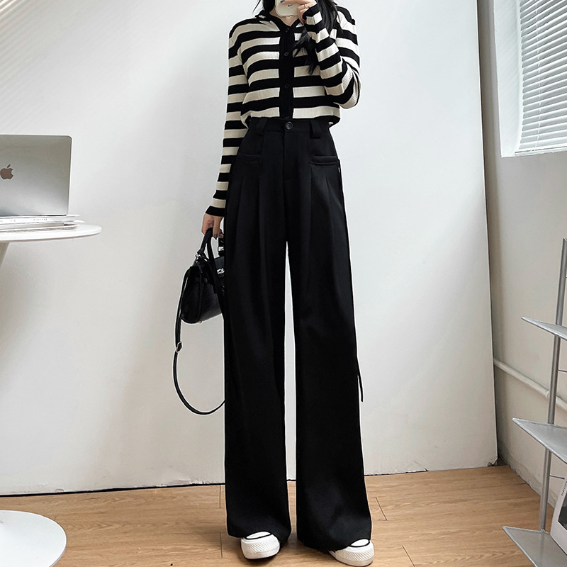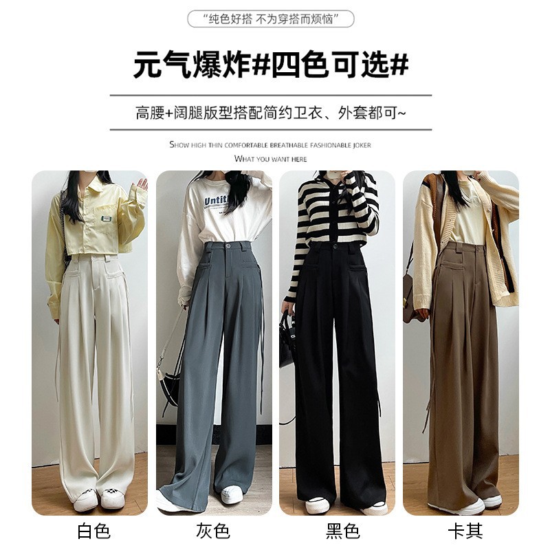 美式西装裤女装春季女新款垂感直筒休闲裤高腰显瘦拖地阔腿裤