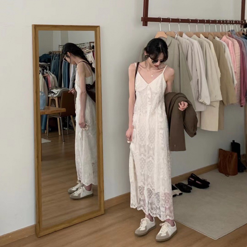 春装荷叶边蕾丝吊带连衣裙女夏季显瘦温柔气质度假裙搭配一套