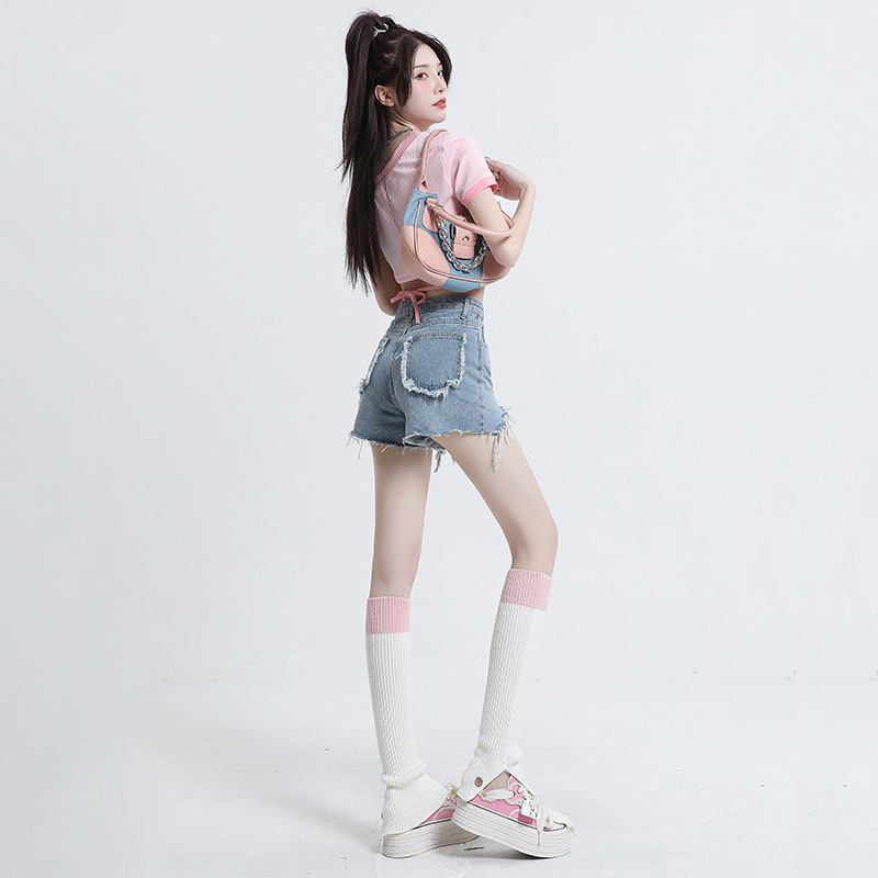 破洞牛仔短裤女夏季新款高腰辣妹毛边流苏显瘦甜辣a字热裤
