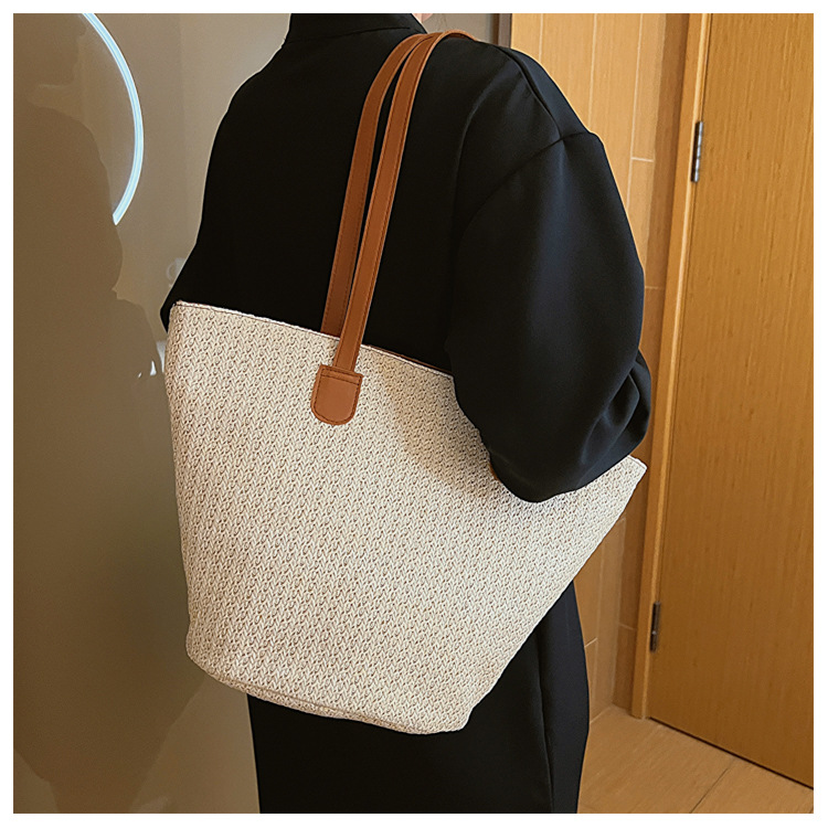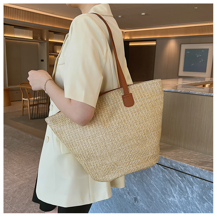 草编大容量时尚手提包今年流行新款洋气菜篮子单肩腋下托特包