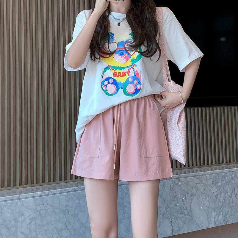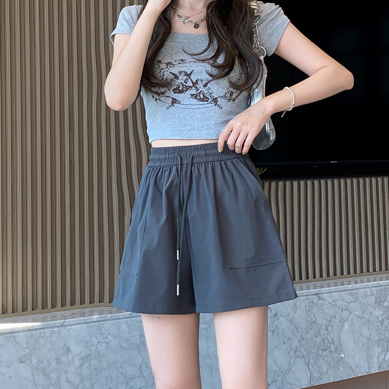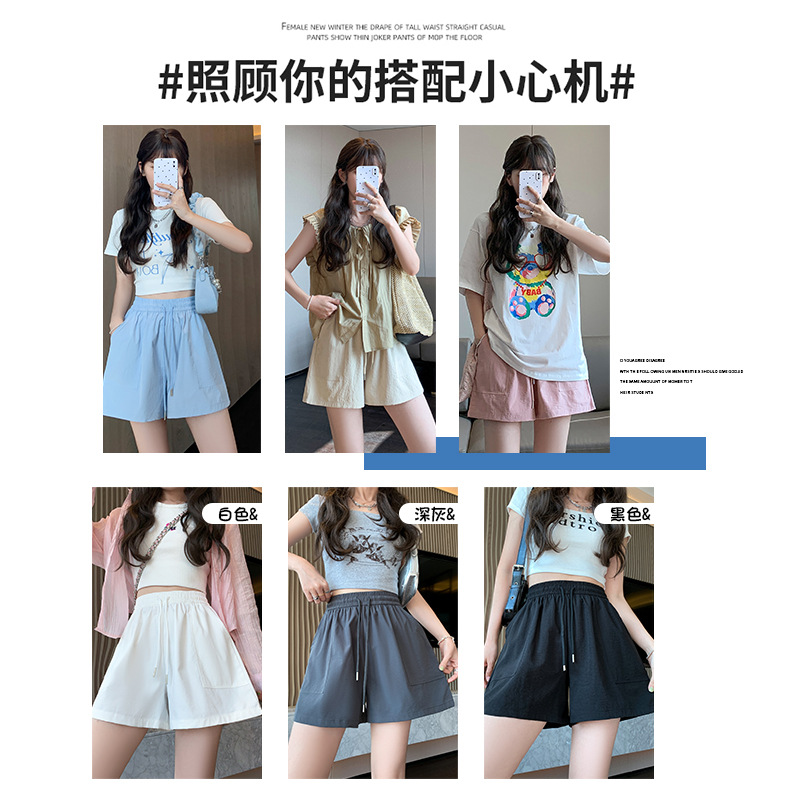 酷丝棉贴袋短裤夏天女新款宽松垂感直筒三分裤显瘦女装阔腿裤