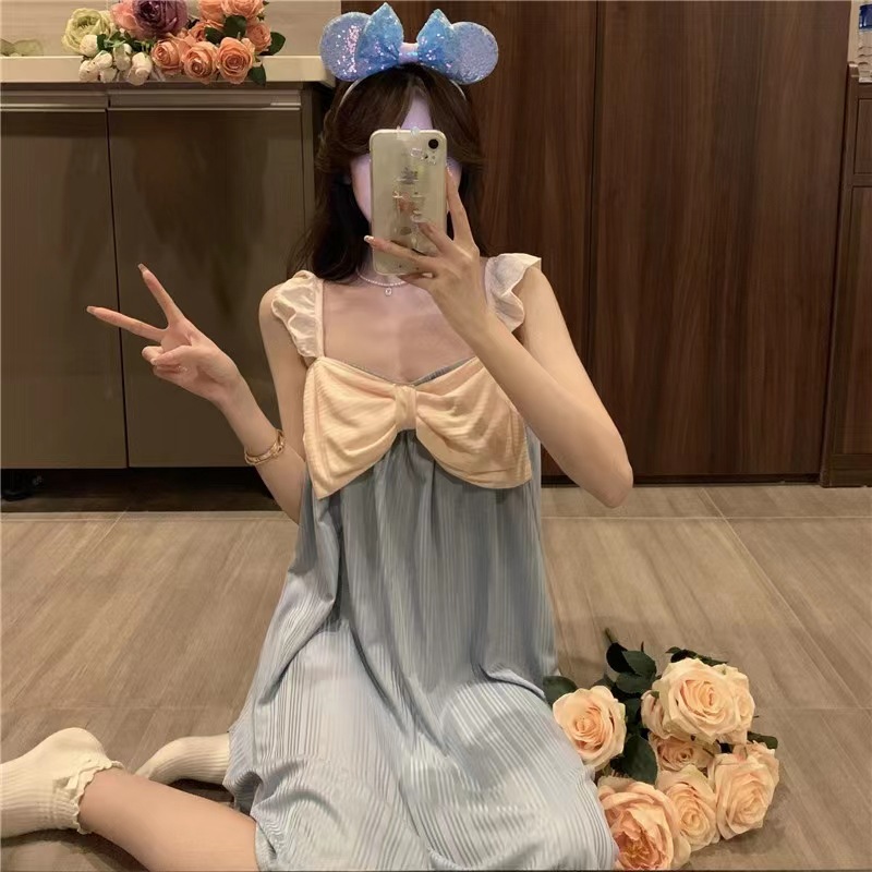 高品质手感坑条可爱性感蝴蝶结睡衣吊带睡裙少女
