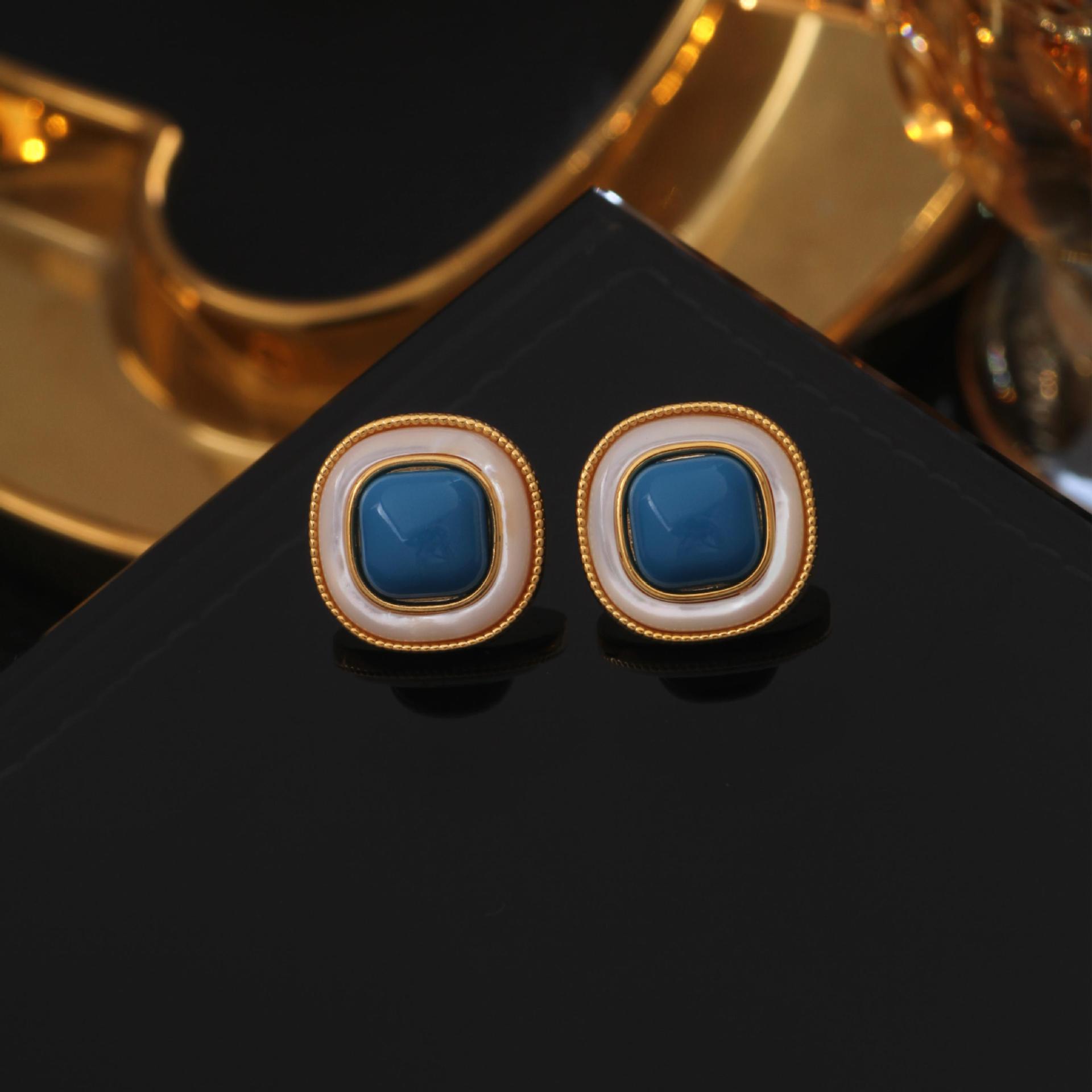 天然方形青金耳钉s925银镶嵌几何回型白贝耳钉通勤百搭款耳饰