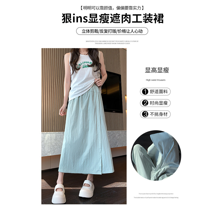 山本工装裙裤女裤夏新款高腰a字半身裙休闲小个子冰丝阔腿裤
