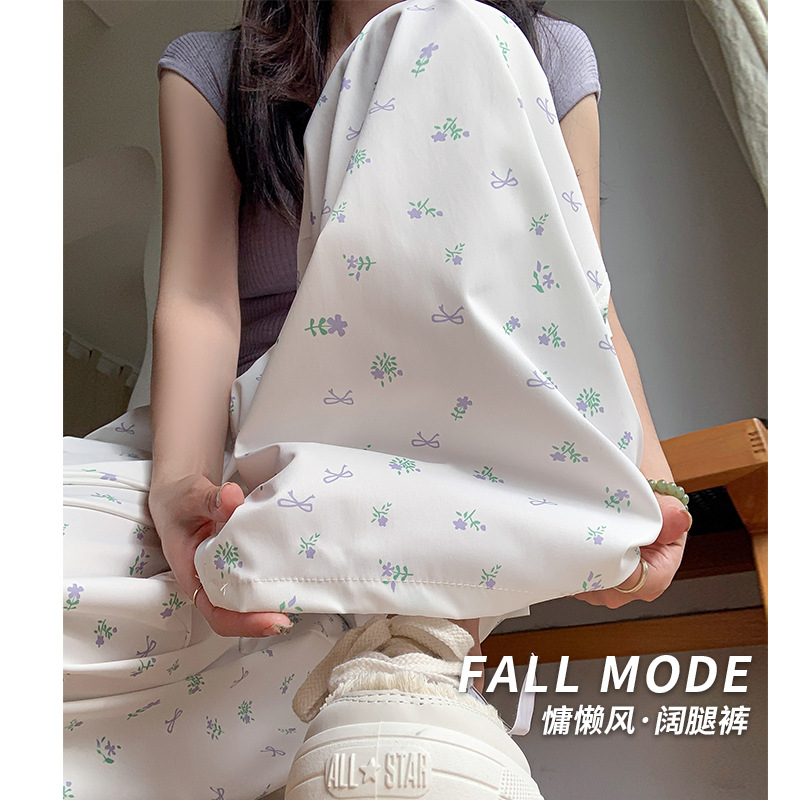 蝴蝶结阔腿裤女裤夏天女裤子24新款高腰休闲直筒裤遛弯冰丝山本裤