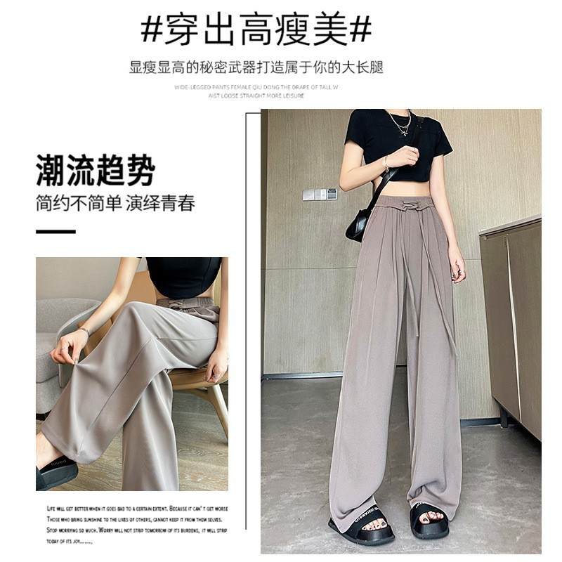 网文西装裤垂坠感裤子女夏季新款高腰直筒阔腿裤显瘦拖地长裤