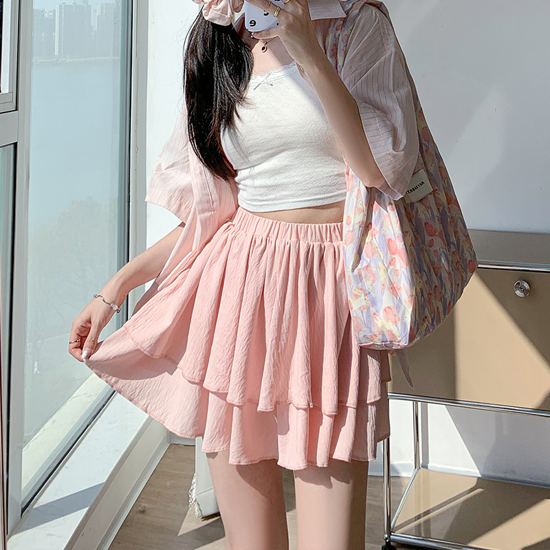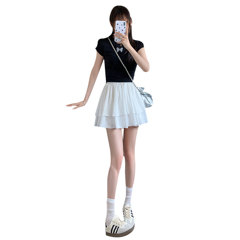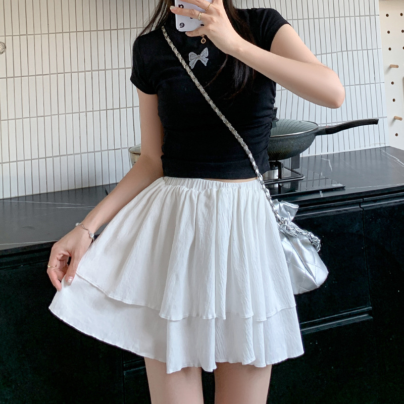 白色蓬蓬蛋糕裙女夏季新款高腰温柔短裙a字显瘦小个子半身裙