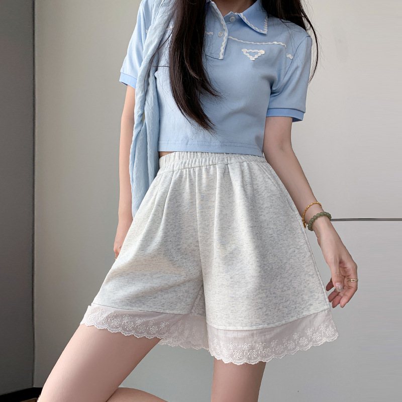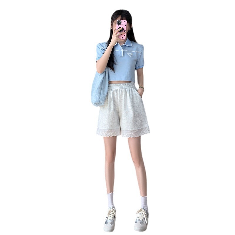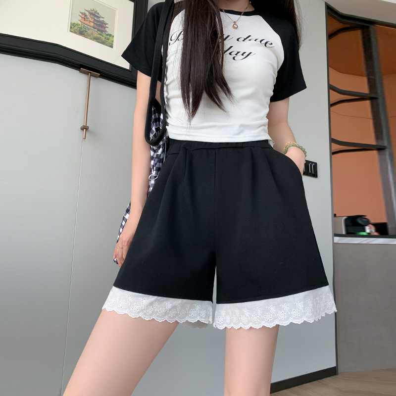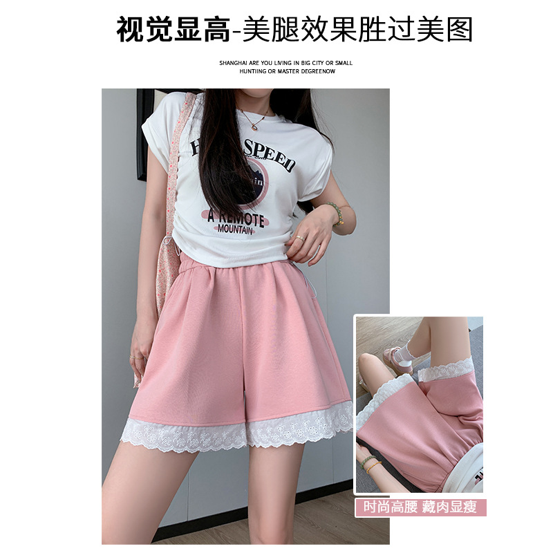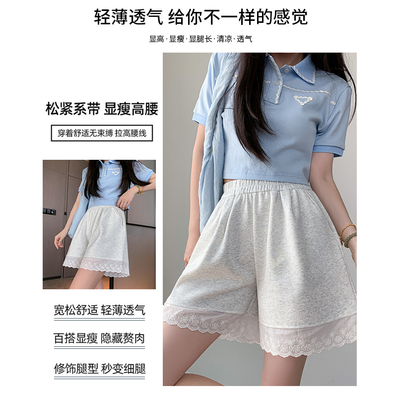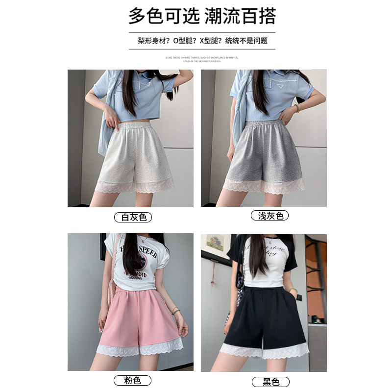 华棉短裤夏季女薄款新款直筒高腰外穿阔腿中裤显瘦蕾丝五分裤