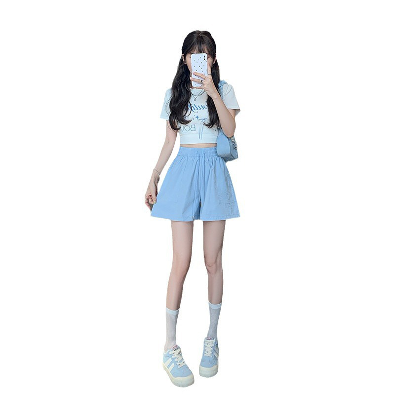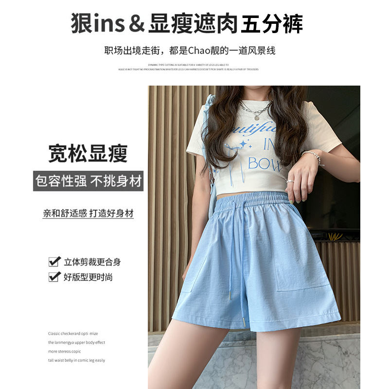 酷丝棉贴标短裤女夏休闲新款显瘦宽松三分裤外穿直筒阔腿裤